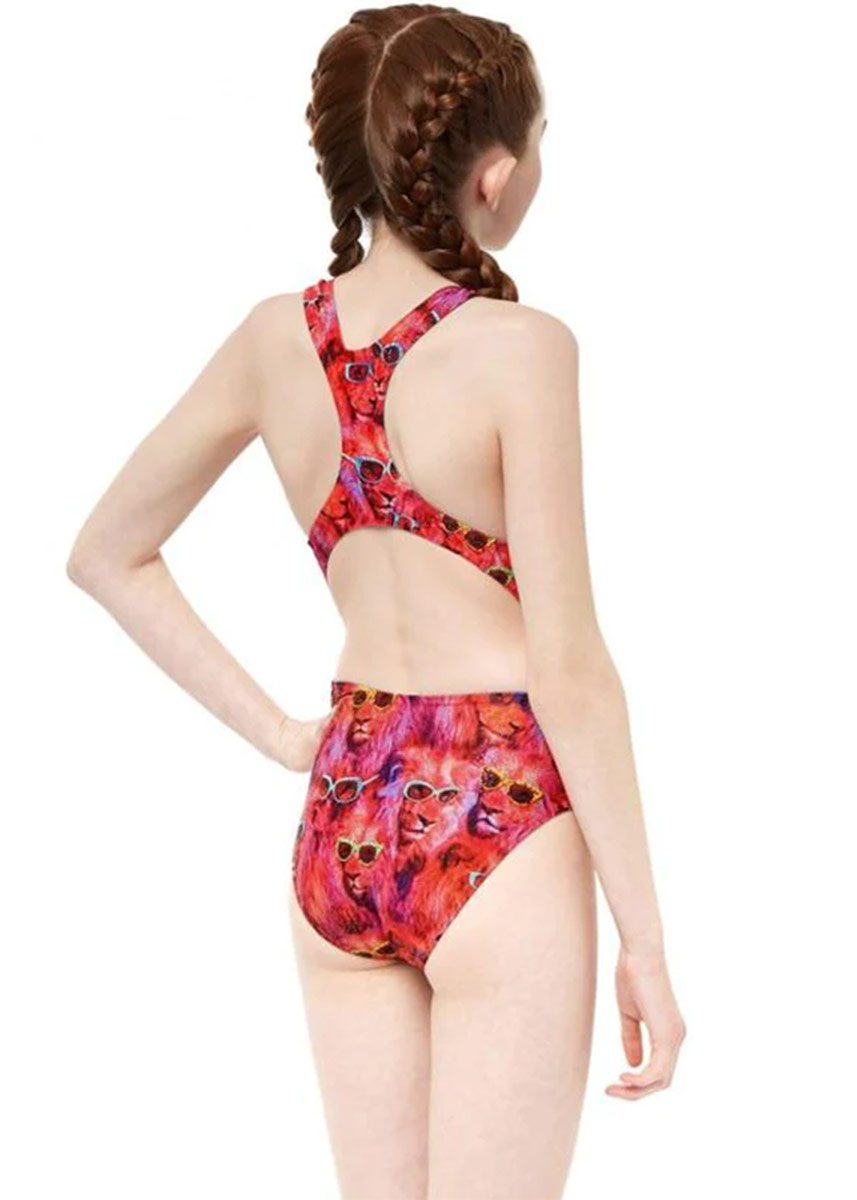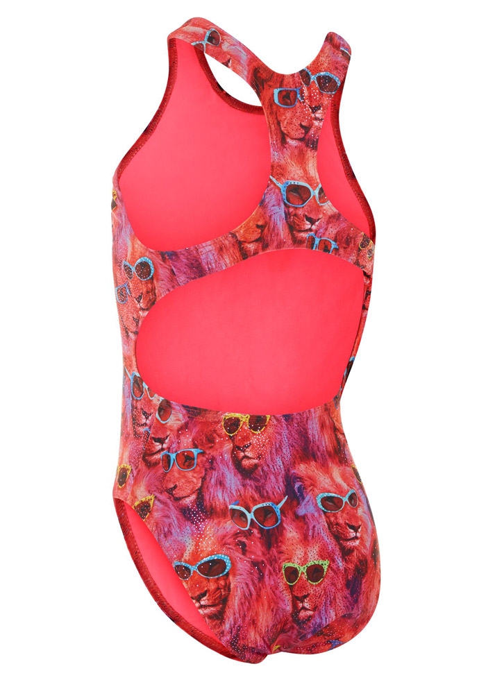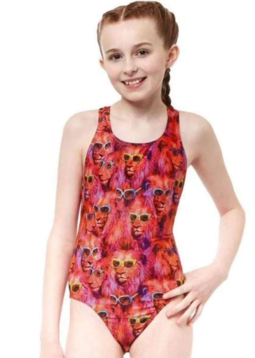 Be the cool cat at your next swimming session with this “Cool Catz” swimsuit from Maru. Featuring an allover print of Lions wearing sunglasses. The Xtra Life Lycra is 100% chlorine-resistant meaning these cool cats will never get old! The thick, sporty racerback design provides a great level of support and ease of movement around the back and shoulders.
