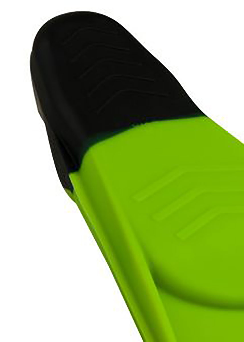 Maru short bladed training fins in Neon Lime. Feature a closed heel foot pocket and open toe design. Ideal for swim training. Short bladed fins allow your legs to kick fast enough to keep up with a normal arm stroke rate and still maintain a 6 beat kick. By reducing the length of the blade and positioning it at the correct angle, the legs and feet mimic a natural swimming kick, as a result the swimmer can build swimming-specific leg strength and hit a race tempo, all without fatiguing prematurely.