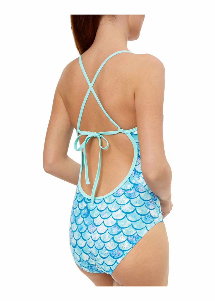 The women’s Shimmer Ecotech Sparkle Tie Back swimsuit is a great choice for swim training or fitness swimming.