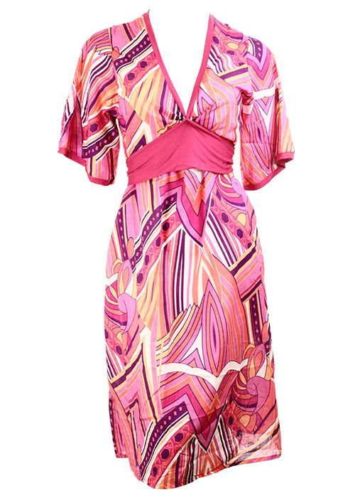 This attractive looking short sleeved V Neck kaftan is easy to slip on over a bikini or costume