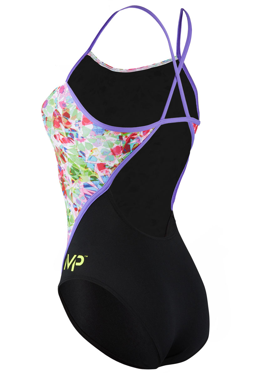 The new Girl’s Prisma swimsuit in a purple and green pattern from MP Michael Phelps is the elite training essential, the MP brand aims to create technologically advanced, performance-enhancing swim products, developed by Michael Phelps and coach Bob Bowman. The Prisma is a must have training suit. With racer back and the thin silicone straps this suit is made for durability and stretch providing you with the most reach and flexibility to hit the hardest of trianing drills.