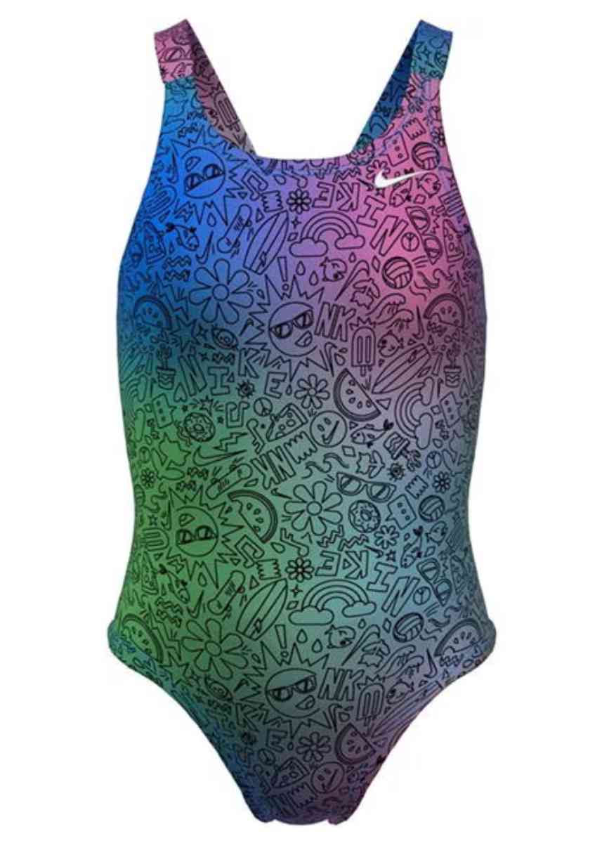 Update your daughter’s swimwear collection with the fun and fashionable girls’ Nike Hydrastrong Multi Prints Fastback One Piece swimsuits.