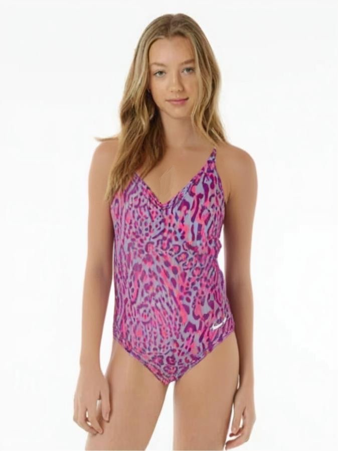 Bring bold energy to swim time with the Nike Girls Wild Lace-Up One-Piece Swimsuit.