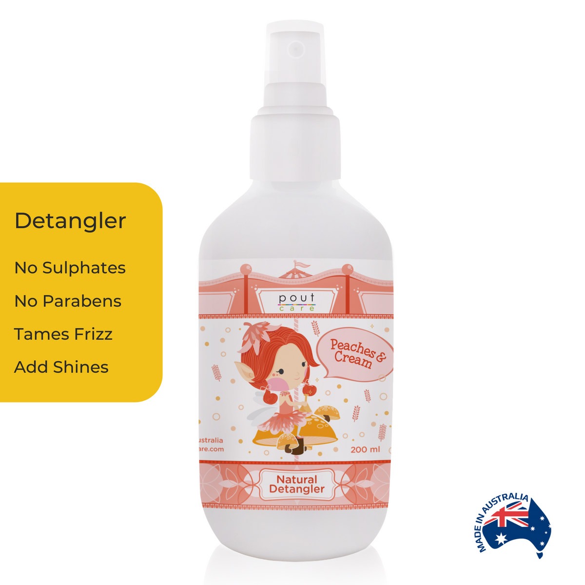 Experience summer vibes every day with Pout Care’s Peaches & Cream Natural Detangler, the ultimate treat for your child’s hair.
