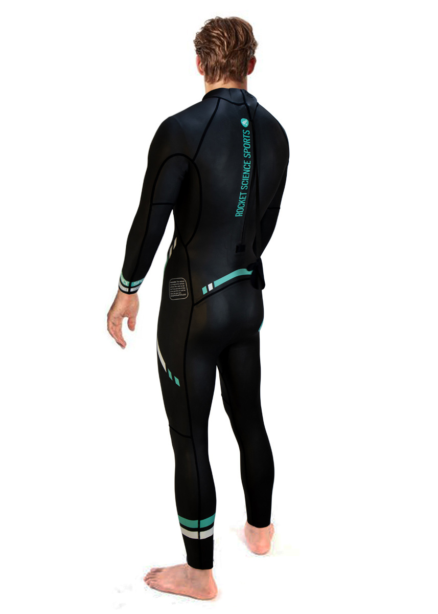 The new Men’s ONE Wetsuit from Rocket Science is a must have for any aspiring triathlete. This Rocket Science wetsuit with vibrant blue stripes, has been designed and constructed with three different neoprene thicknesses to make the suit comfortable and allows it to stretch where it matters most.