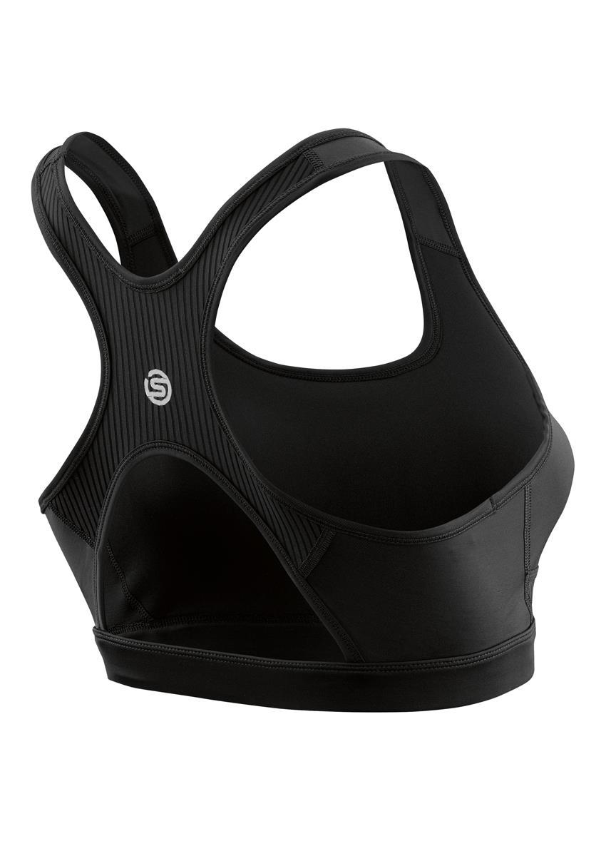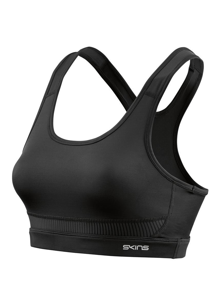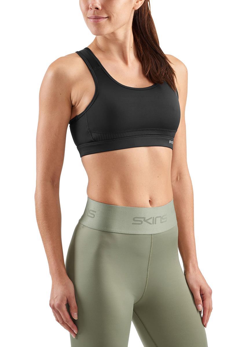 The SKINS DNAmic Primary women’s Sports Bra in black, maximises support during warm-weather workouts.
