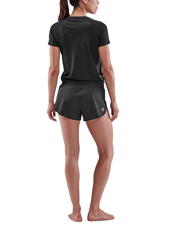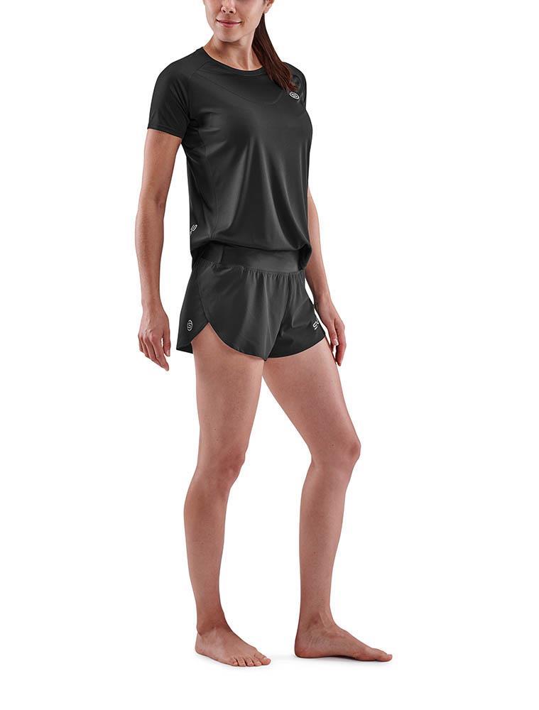 Worn on its own or over the top of SKINS compression wear, the black coloured women’s SKINS SERIES-3 Short Sleeve Top features mesh panelling that mirrors the design of the base compression garment for improved air flow and moisture wicking.