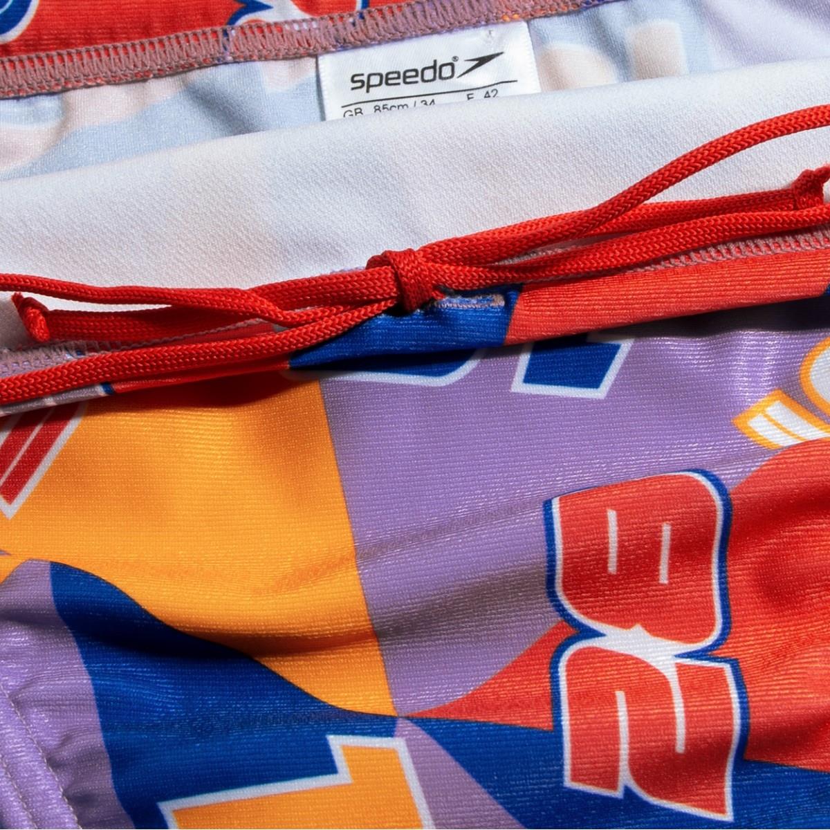 Make a splash the next time you hit the water with these high-performance swimming briefs from the reliable and renowned brand, Speedo. Showcasing a vibrant blend of cobalt, purple, mandarin, watermelon and white, these stunning briefs are designed to set you apart from the rest.