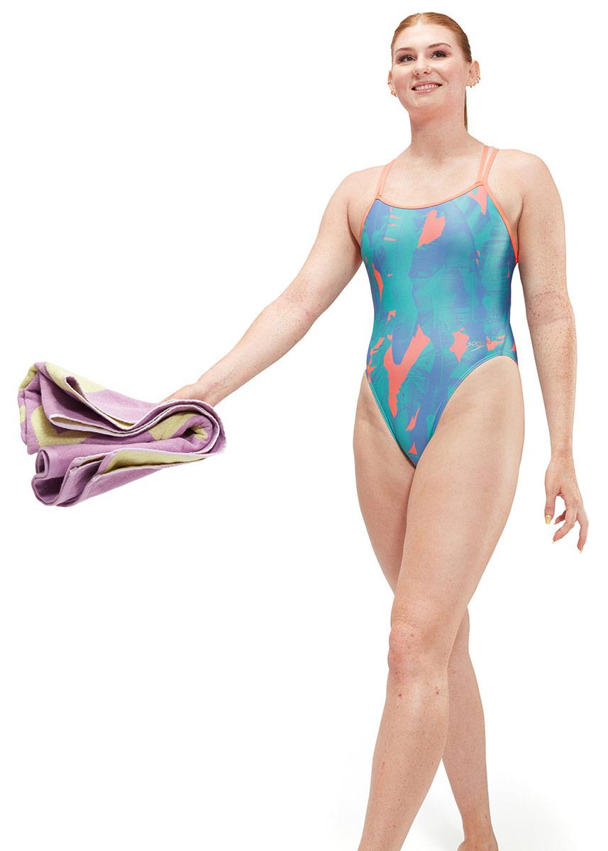 There’s no better way to express style and enjoy the pleasure of swimming. Indulge in the Speedo Women’s Allover Digital Starback Banana Leaf Swimsuit – Blue / Pink.
