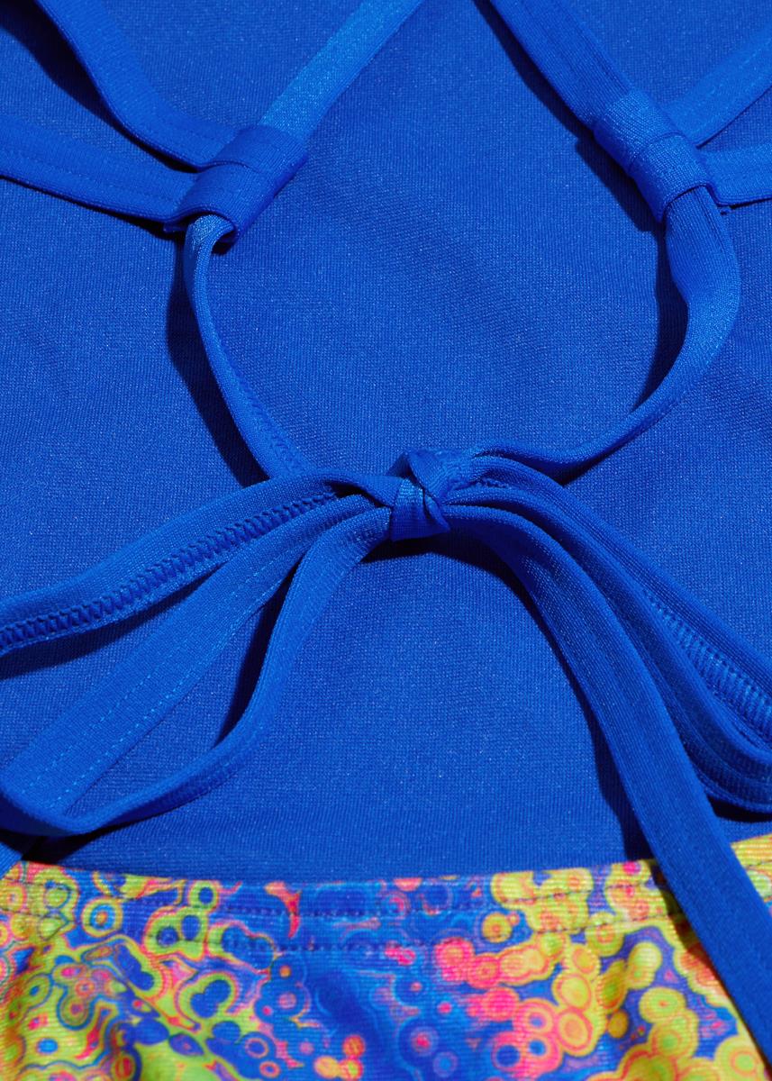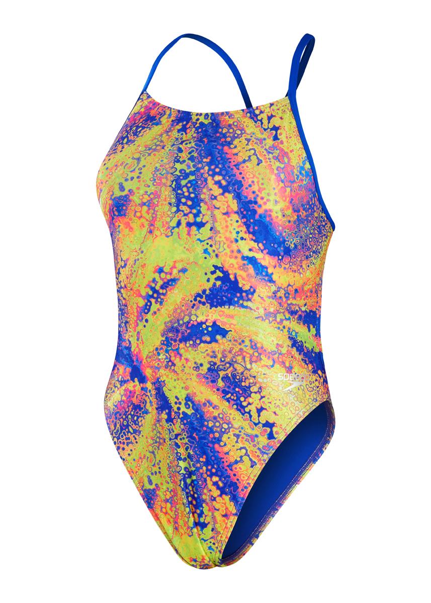 Long drill sets are no match for this striking Speedo Allover Digital Tieback swimsuit, which features a ‘Cosmic Distortion’ print in mesmerising psychedelic colours.