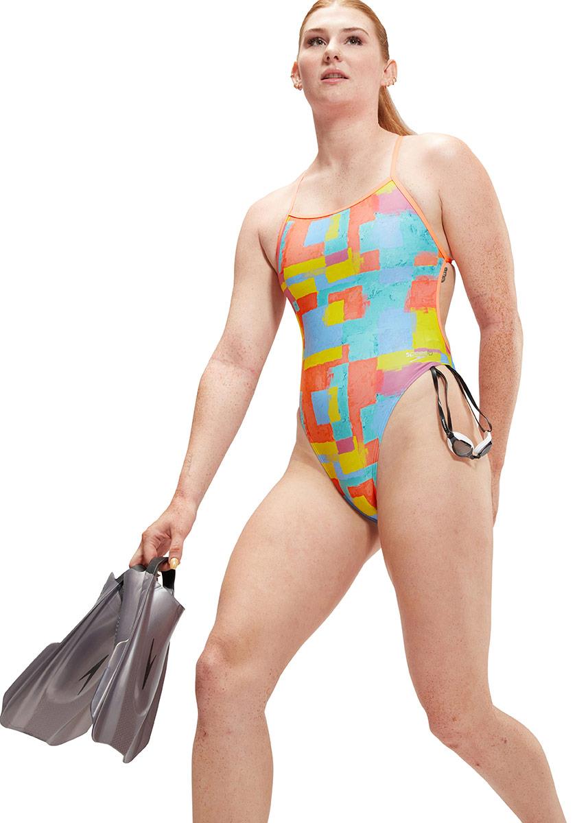 With a multicoloured Basque fresco inspired abstract print, this stunning Speedo Allover Digital Vback swimsuit will liven up any squad training session.