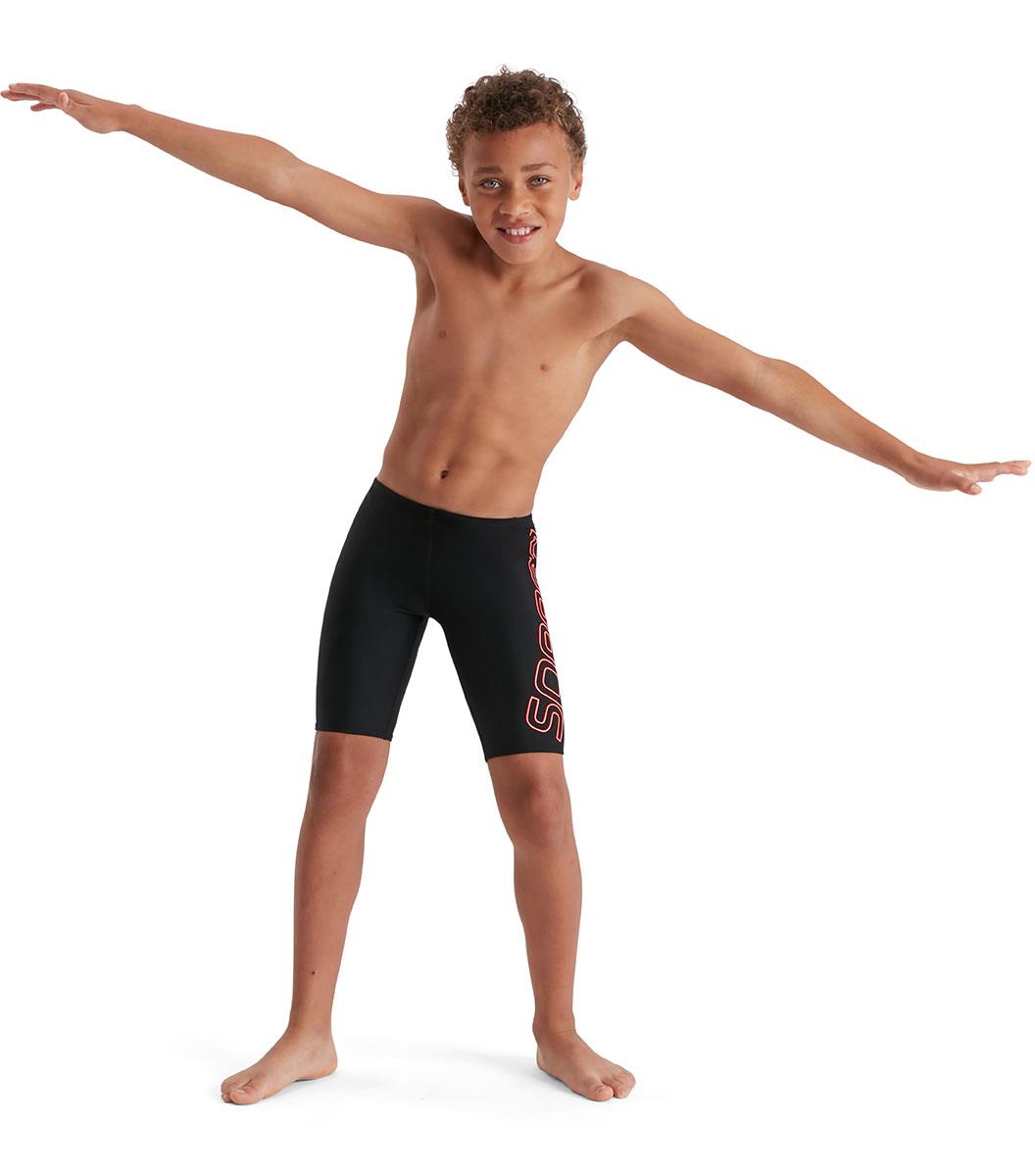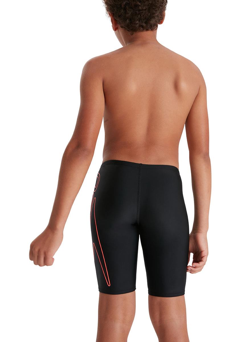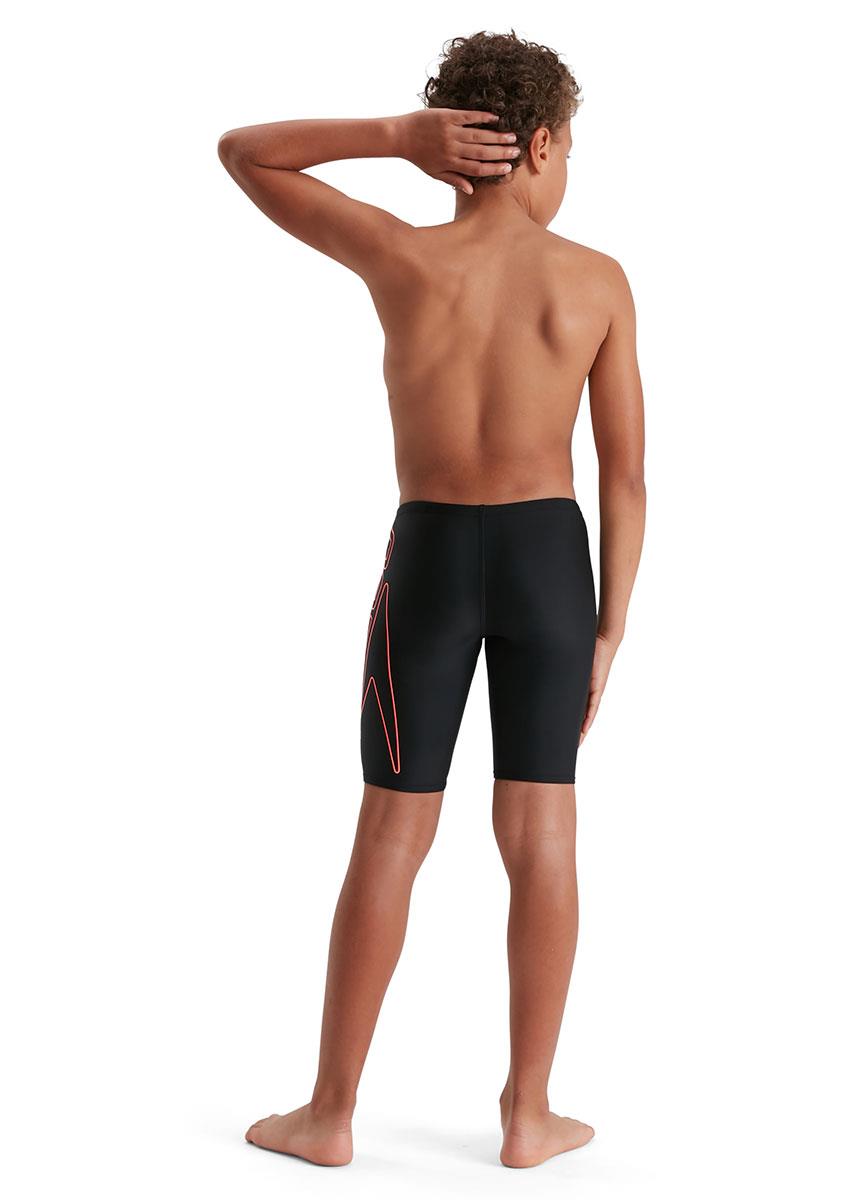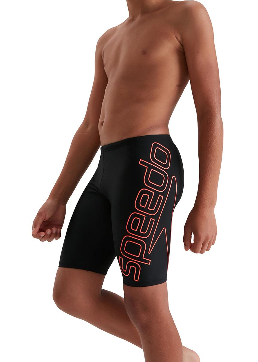 Sporty Jammer with iconic Speedo branding. Our boys’ jammer features a super-sized print of our iconic Speedo logo in red. Lined at the front for comfort and modesty, it includes an internal drawstring to allow young swimmers to adjust the fit. Soft, stretchy fabric makes it ideal for regular swim sessions, while our shape-retaining Endurance10 fabric with CREORA HighClo ensures it fits like new for longer.