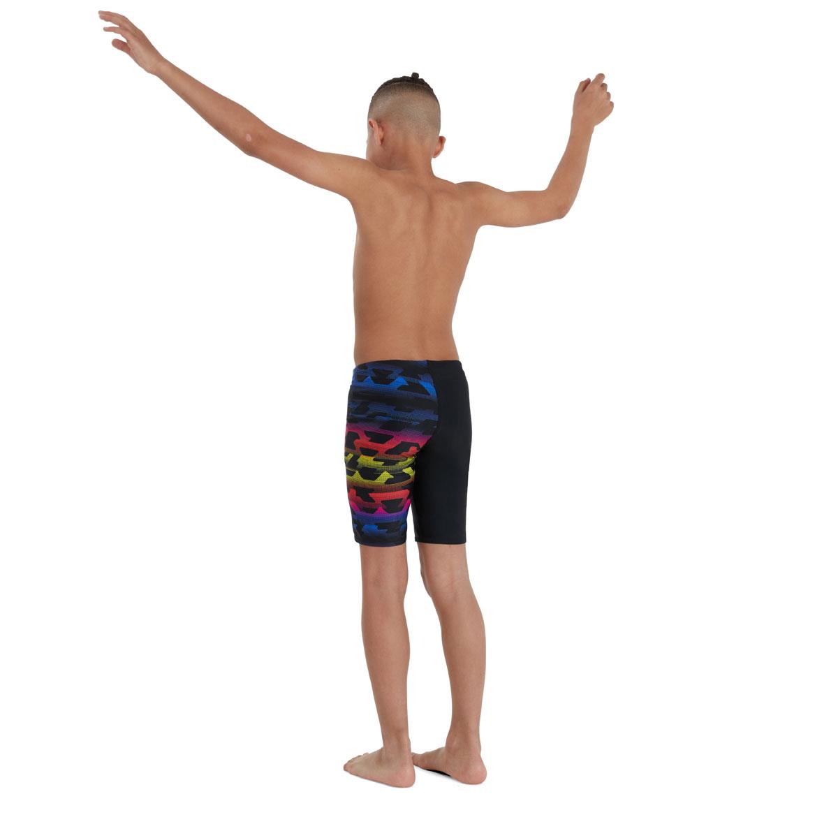 Bring an explosion of vibrant colour to the pool and beach with our striking V-Cut Jammer, which features a bold asymmetric pattern print. Designed with a V-cut panel for enhanced comfort, it includes an internal drawcord to allow young swimmers to adjust the fit. Ideal for regular pool sessions, our ECO EnduraFlex fabric offers higher chlorine resistance than standard swimwear fabrics and fits like new for longer with CREORA® HighClo™. Yarns in the fabric are made from 100% recycled waste fabric, so it’s better for the environment too.