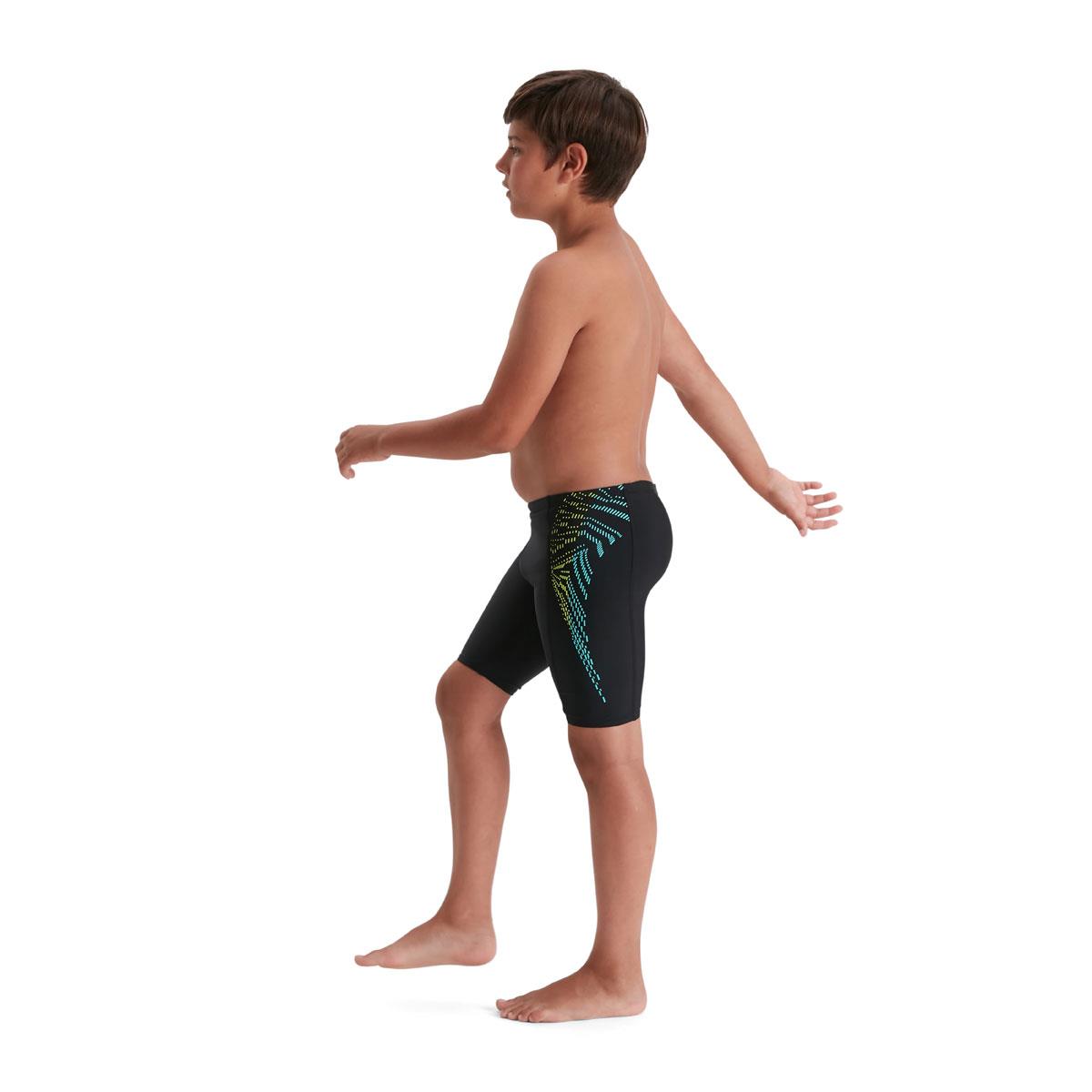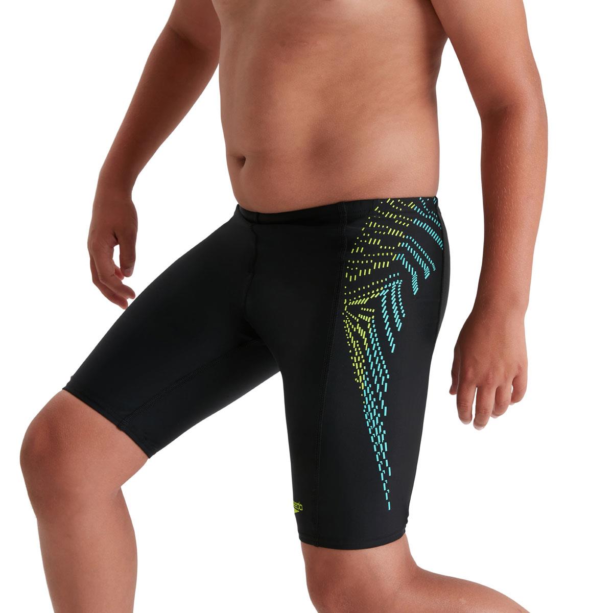 Speedo Essentials – everything your child needs for a great swim. Featuring a bright yellow and green plastisol graphic, this sleek-looking black Jammer is stylish and understated. Ideal for training, lessons and fun in the pool, it’s lined at the front for comfort and modesty and includes an internal drawcord to allow young swimmers to adjust the fit. Soft, stretchy fabric make it ideal for regular swim sessions, while our shape-retaining Endurance10 fabric with CREORA HighClo ensures it fits like new for longer.