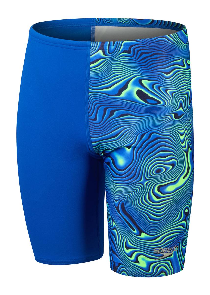 Command the pool like a titan of the deep with the Speedo boys Allover Digital Jammer, which features a hypnotic blue and green print inspired by underwater seascapes.