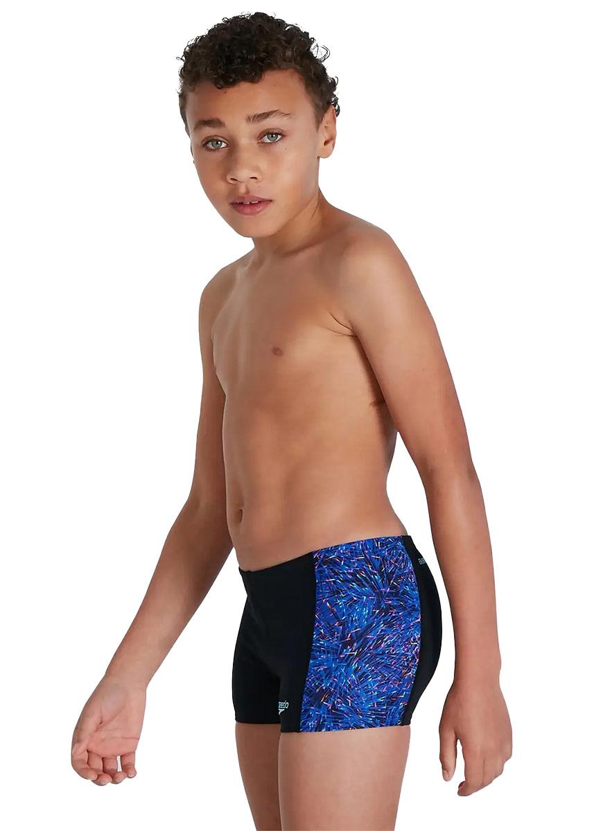 Splash, dive, and train in this sporty boys Digi Panel Aquashort, featuring eye-catching side panels with a Speedo fibre-optic style print design.