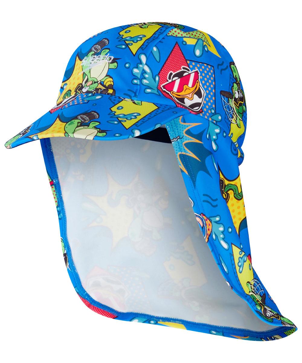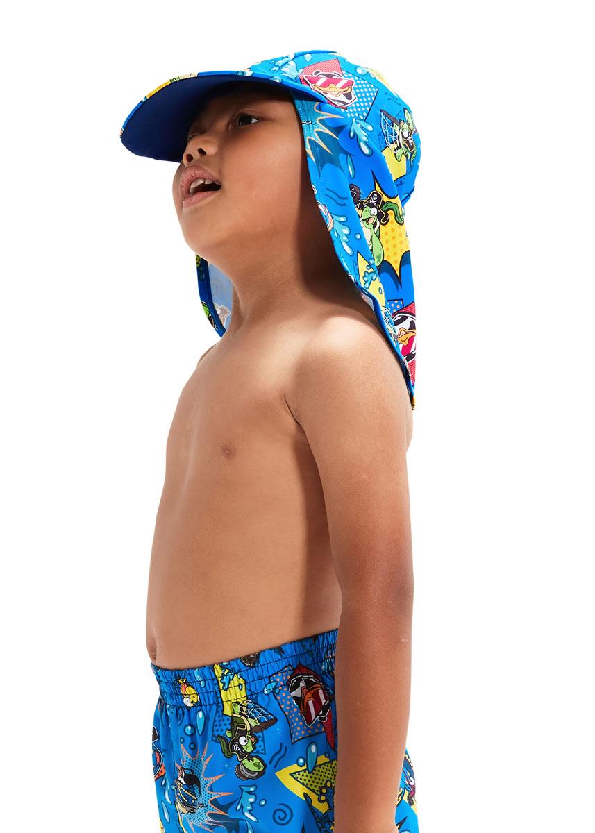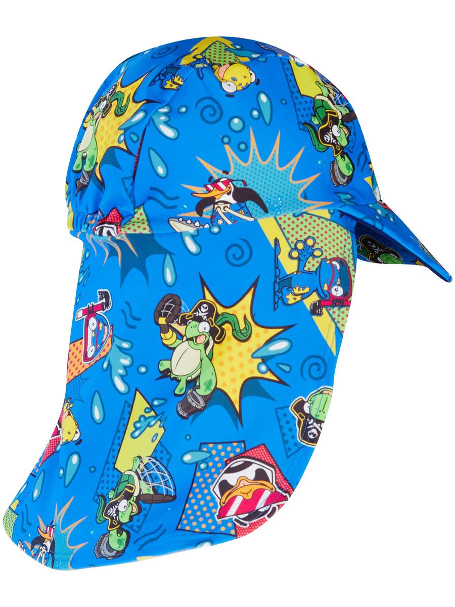 Beat the heat with Corey Croc! This playful blue Sun Protection Hat with green Corey Croc print includes a long back to protect delicate little necks from the sun.