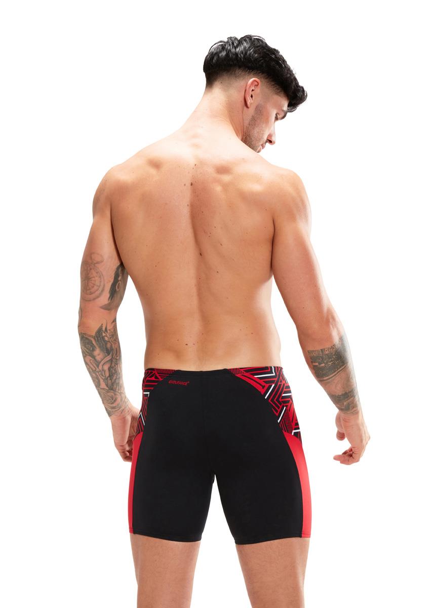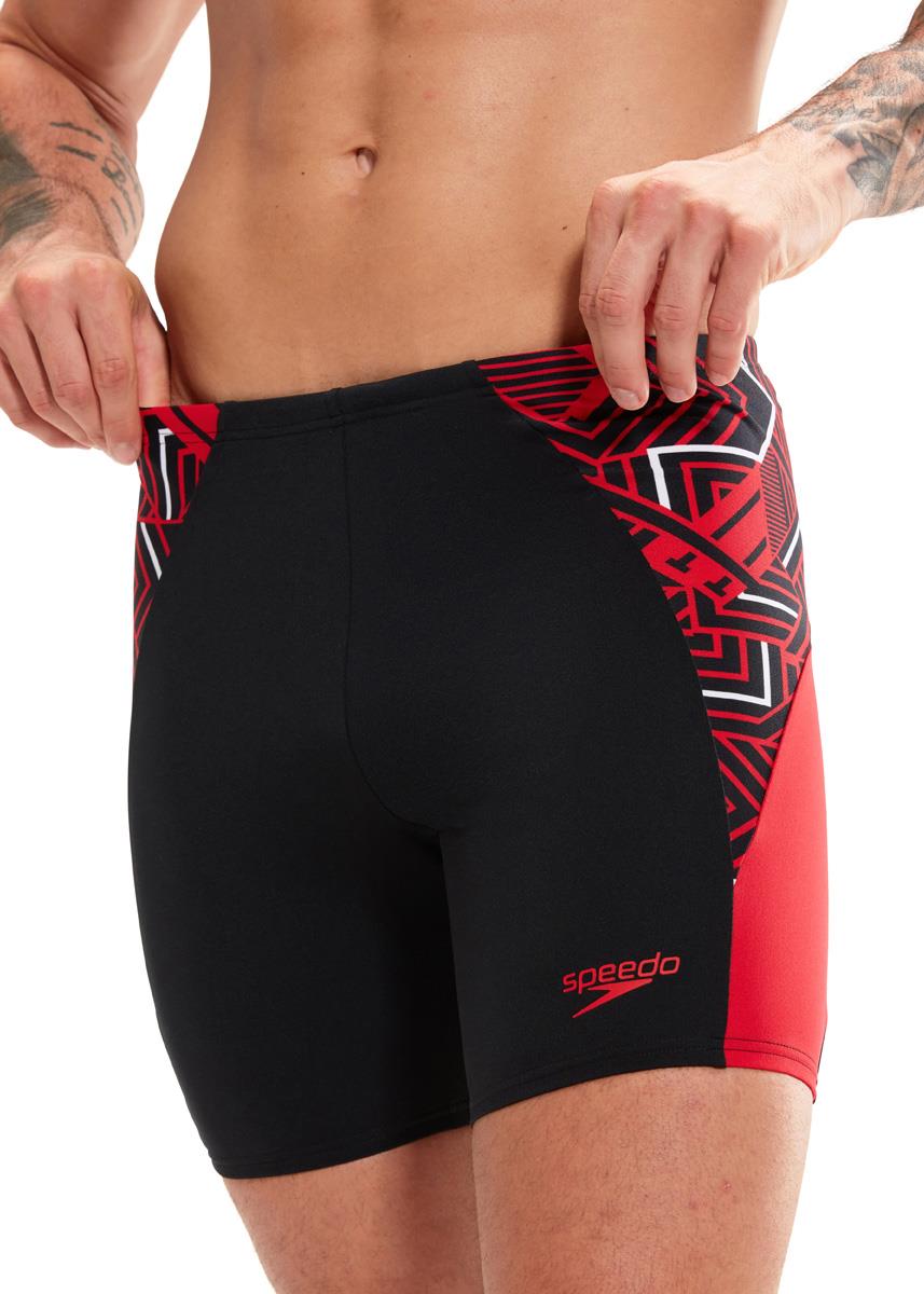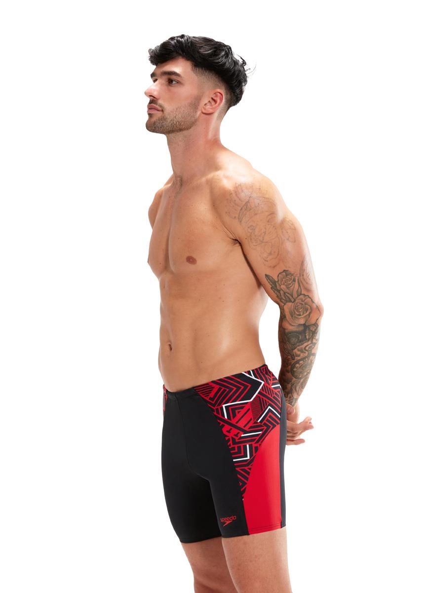 Tech-inspired aesthetics. Cut a streamlined silhouette in training wearing this shorter-length Mid-Jammer, designed with a bold red and white panel print inspired by the geometric lines of Bondi’s iconic Bondi Icebergs pool. A power mesh rubberised liner provides enhanced comfort and support during training, while the drawstring waist allows an adjustable fit. Designed to be durable and better for the environment, the jammer features Speedo new ECO Endurance+ MAX fabric, which is 100% chlorine resistant, quick-drying and made from 100% recycled post-consumer waste.
