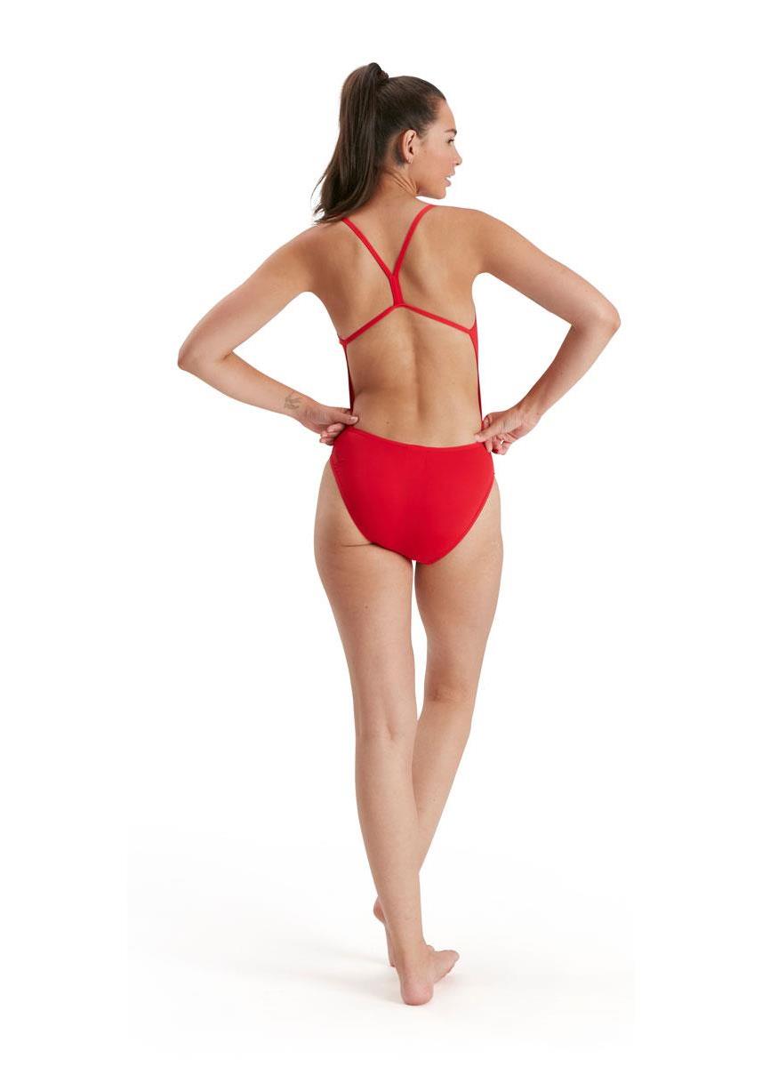 Speedo’s classic Thinstrap swimsuit in Fed Red, now with better eco-credentials. We’ve given our classic Thinstrap swimsuit an update using our super-durable new ECO Endurance+ fabric. Retaining its wide-open back and thin straps for unrestricted shoulder movement and the high cut leg for maximum flexibility during training, it’s now made from 50% recycled materials. Quick to dry and 100% chlorine resistant, it’s ideal for regular training sessions.