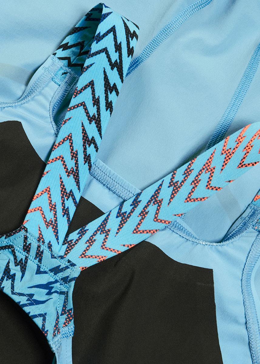 Flexible comfort straps reduce skin rubbing, while the compressive fabric, leg grippers and bonded dual-layer inner panels deliver the look and feel of a racing suit from box to blocks.