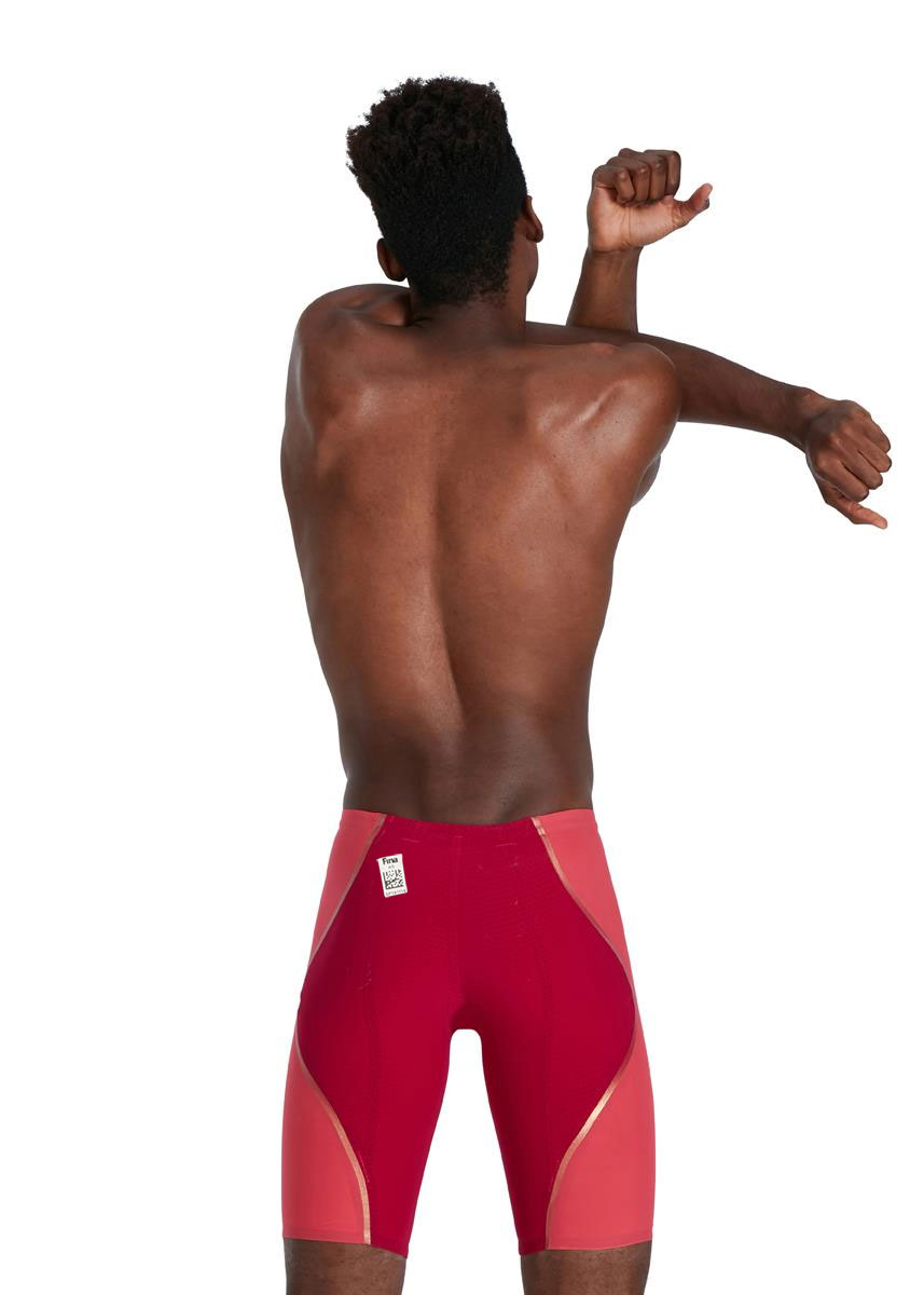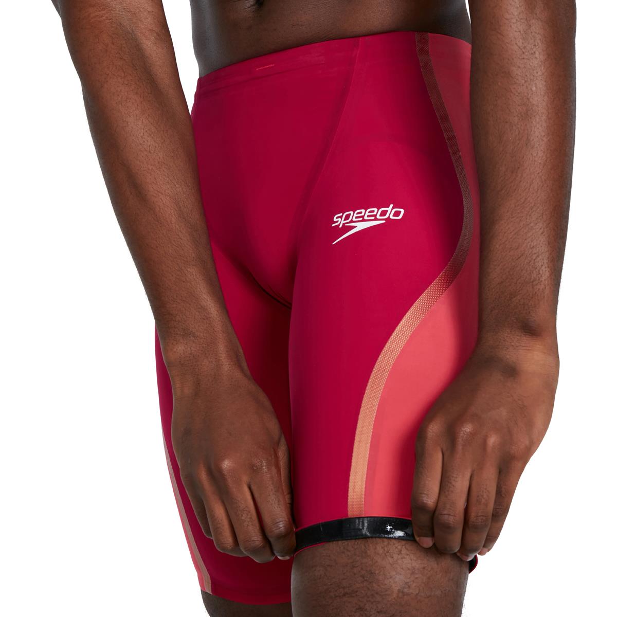 The Fastskin LZR Pure Intent Jammer in Dark Magenta & Phoenix Red features compressive dual layers and ergonomic seam construction designed to connect key muscle groups for greater power return. Textured fabric zones target drag reduction so you get the very best from your swim, and the triple fabric construction with bonded seams has been designed to enable greater movement. The regular waist jammer style offers greater flexibility and may be preferred by breaststroke and IM swimmers.