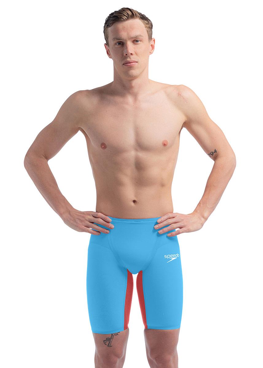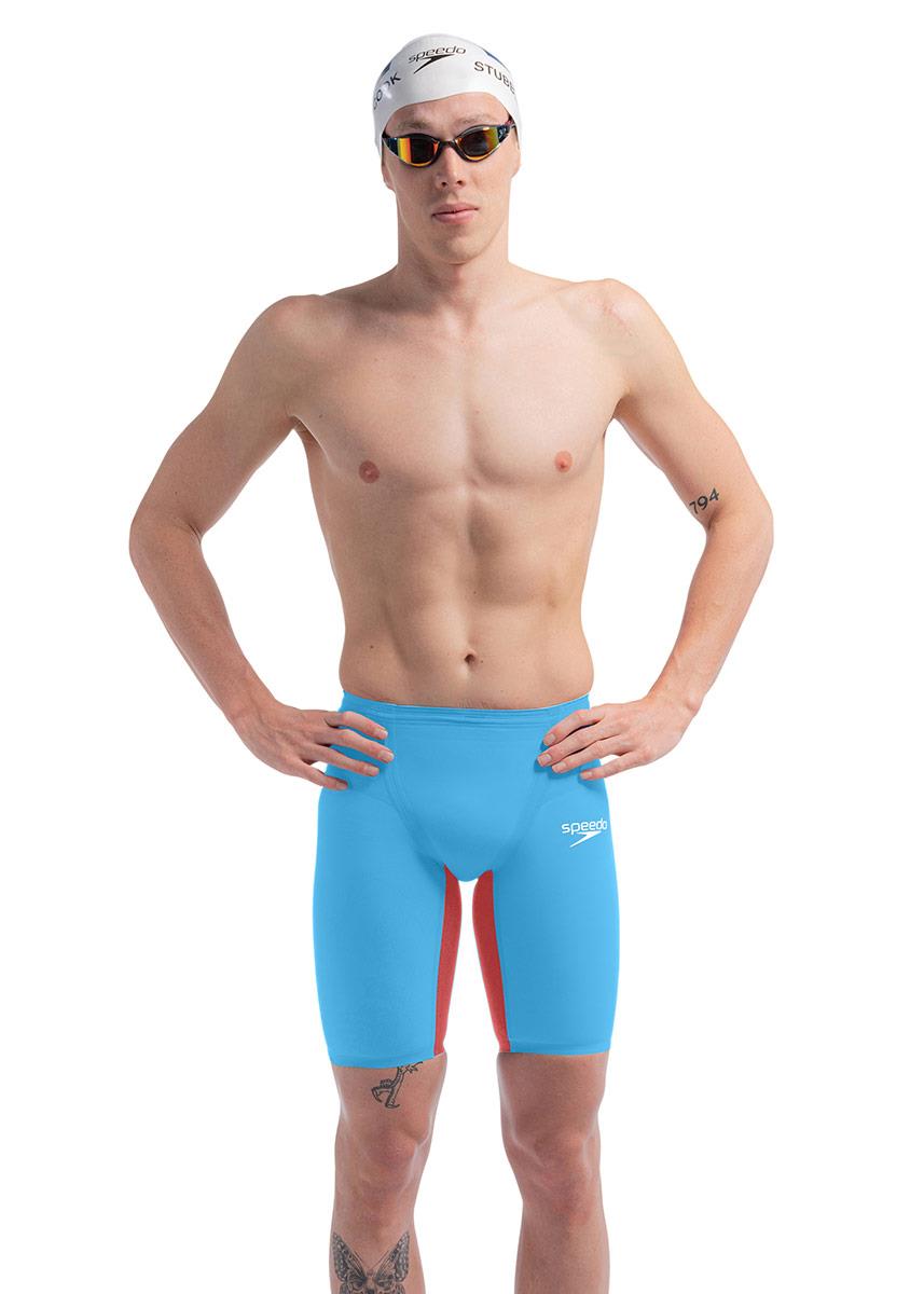 Hit Top Speed with the Speedo Fastskin LZR Pure Valor 2.0 Jammer in Picton Blue / Flame Red