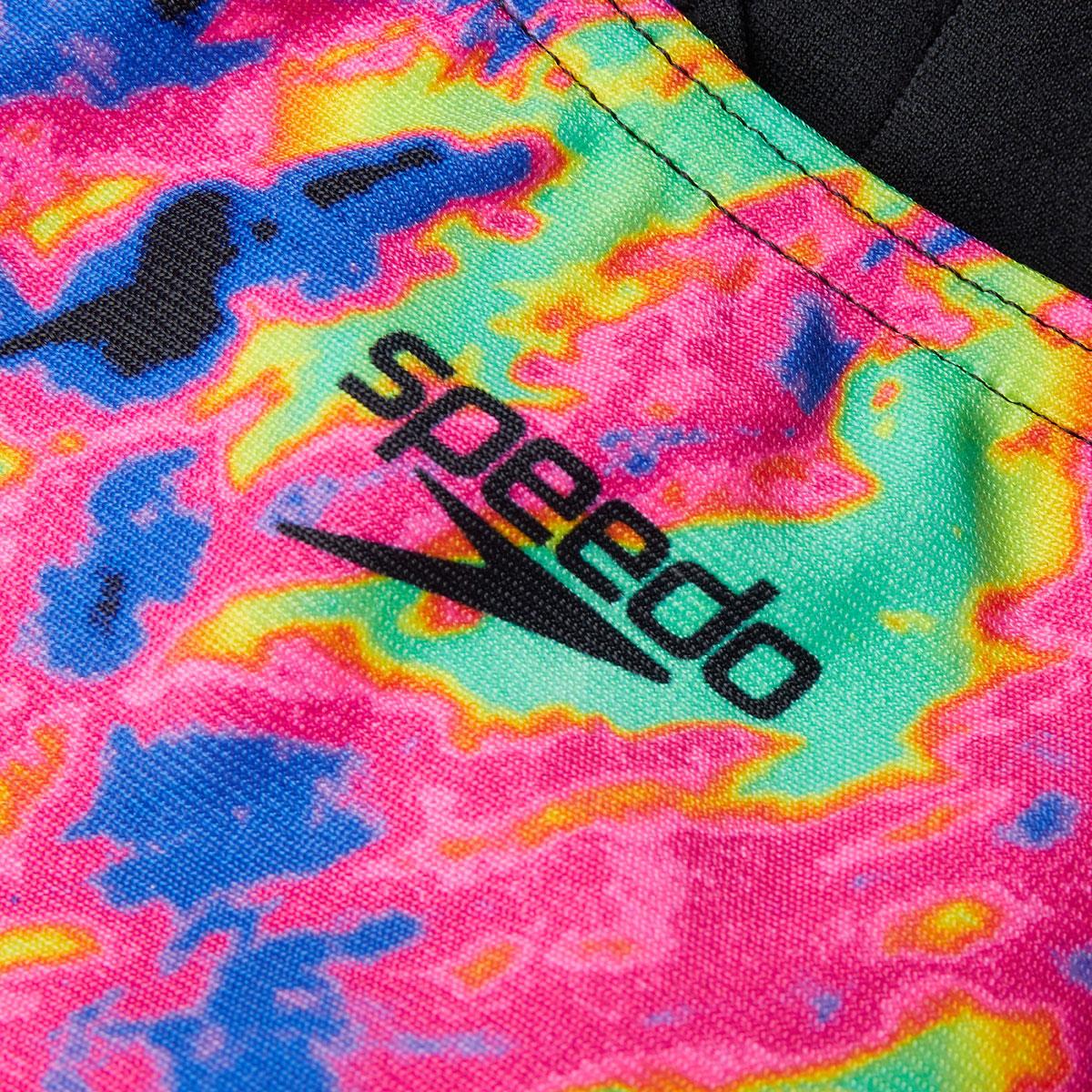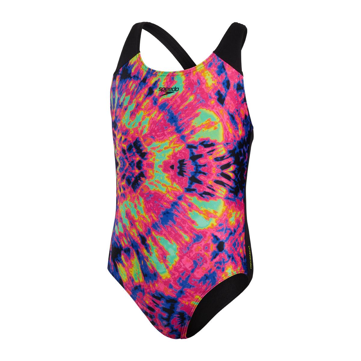 With its dazzling tie-dye-effect print, this Splashback swimsuit brings a burst of energy to lessons and training. The splashback style features straps set away from the shoulders to increase freedom of movement, allowing young swimmers to train without feeling restricted.