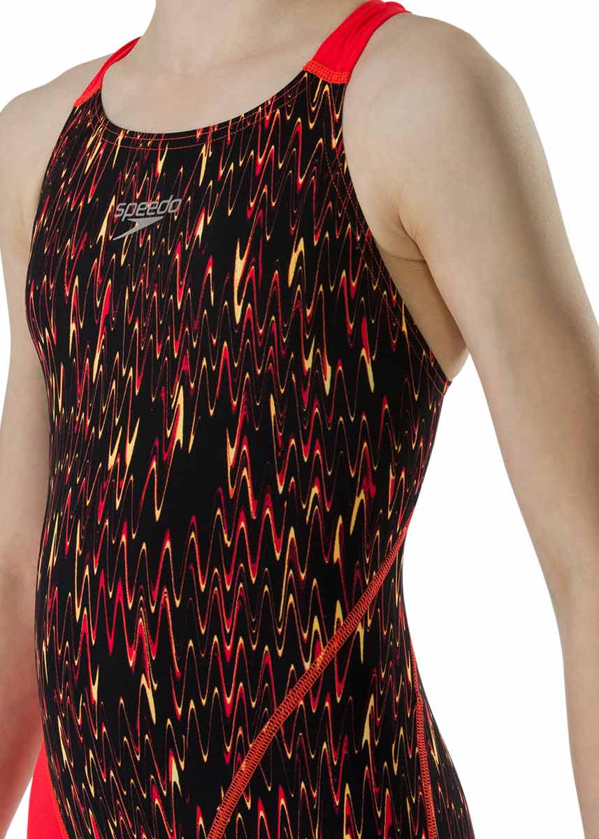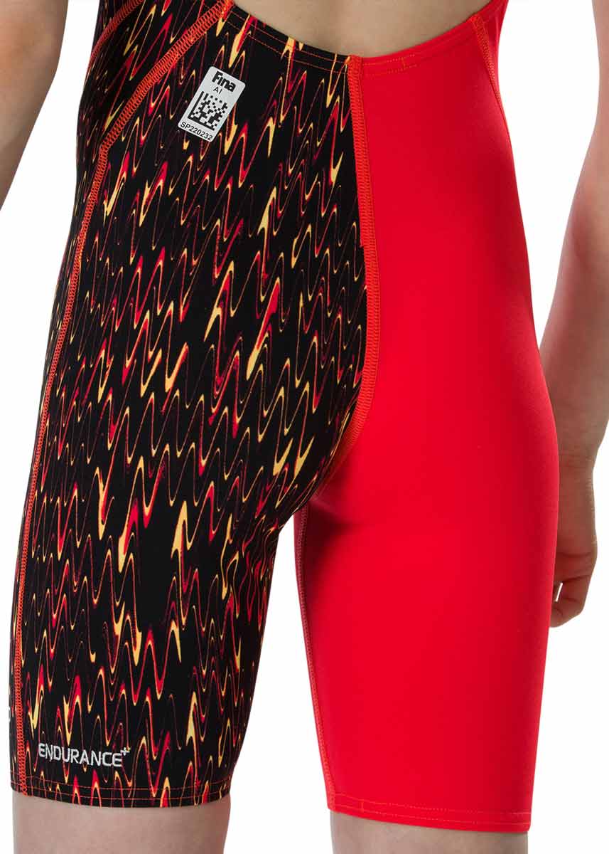 Speedo Girl’s Fastskin Endurance+ Openback Kneeskin-Black / Lava Red /Papaya Punch