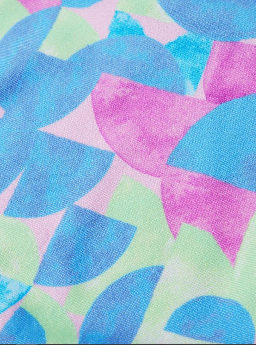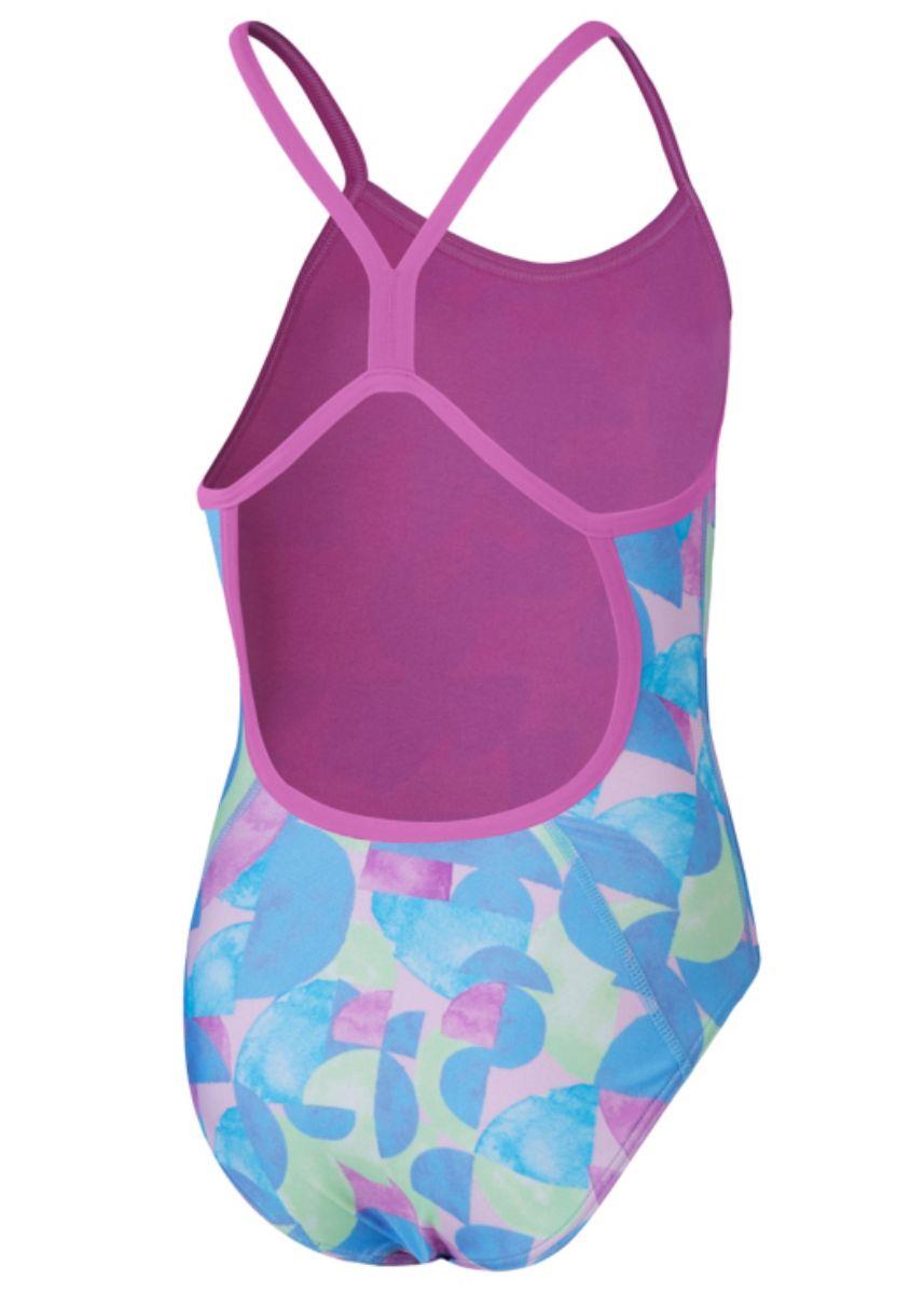This “Space Tiger” Vback swimsuit is perfect for junior swimmers, featuring a vibrant print in blue, red, and pink. The simple Vback design and medium leg cut ensure a comfortable fit and full range of motion. Made with quick-drying, 100% chlorine-resistant Endurance+ fabric, it offers long-lasting performance. The suit is also eco-friendly, as one of its yarns is made from 100% post-consumer waste, such as recycled plastic bottles. Fully lined in Kiki Pink for added comfort and modesty, this swimsuit is a top pick for training