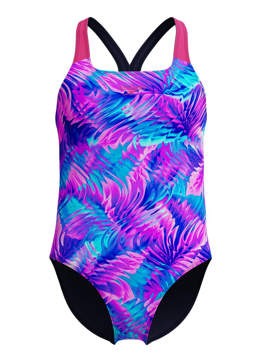 Speedo Girls Allover Print Powerback – Pink / Blue