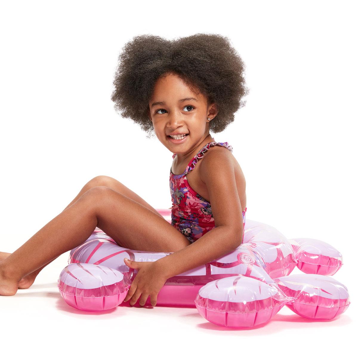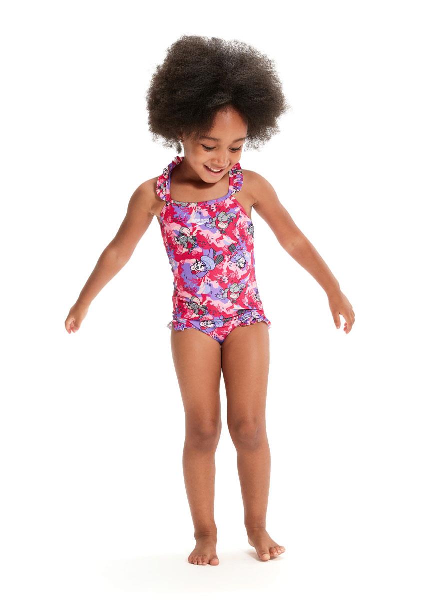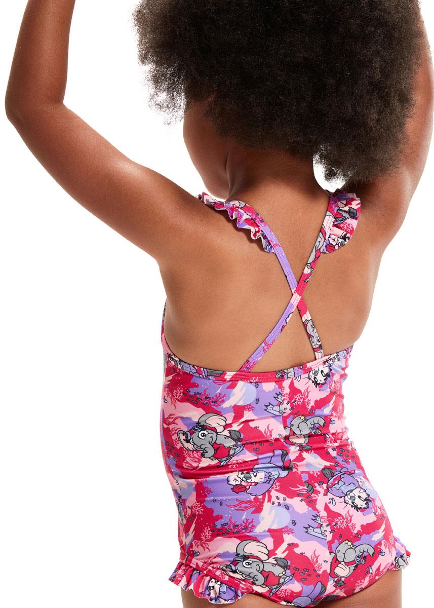 Pretty in pinks and purples, this fun Thinstrap Swimsuit is perfect for little swimmers and features Speedos fun-loving new Aria the Otter and Ellie the Elephant characters enjoying a swim down under.