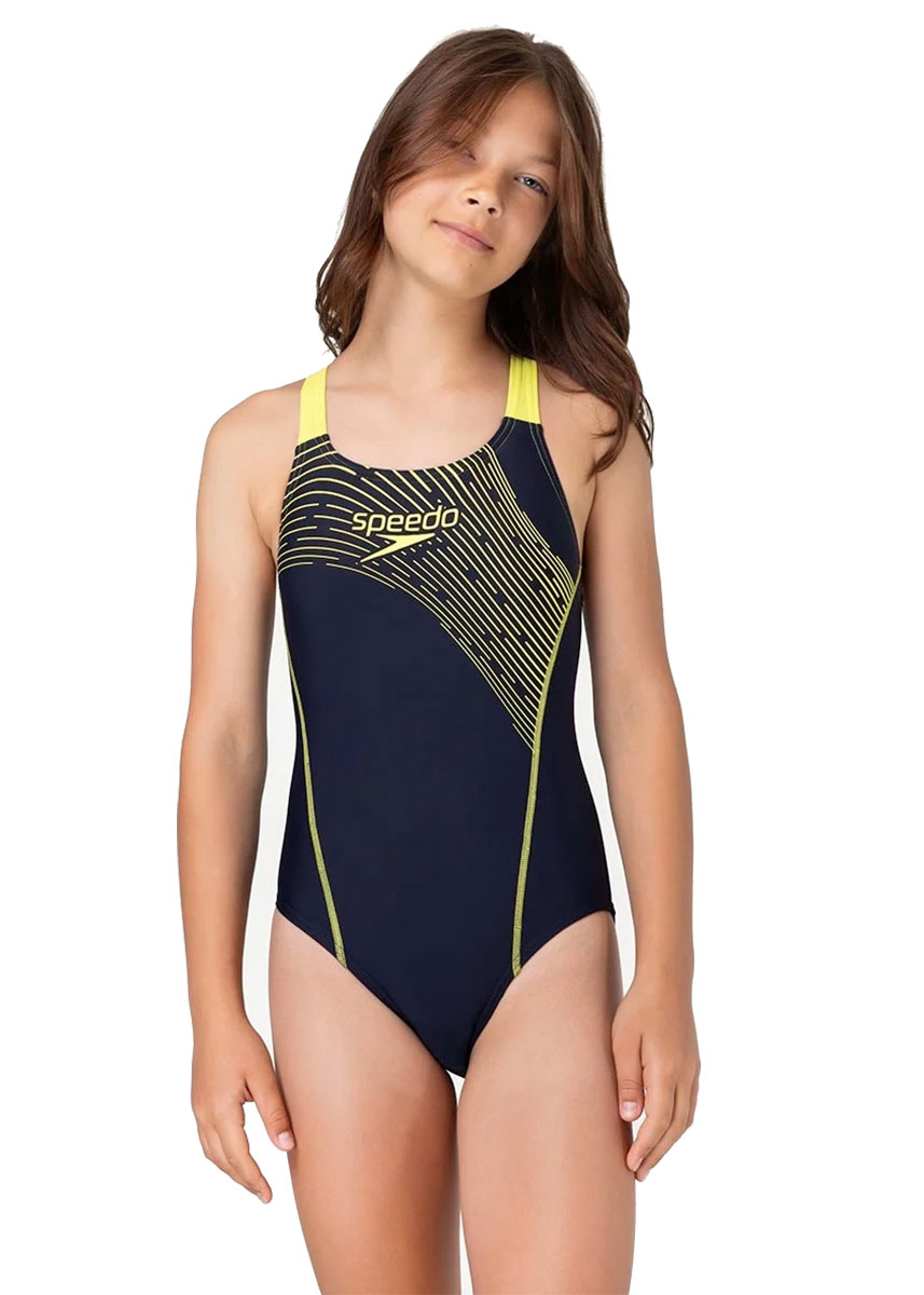 Fly through lessons and training sessions wearing the sleek girls Speedo Medley Medalist swimsuit from the much-loved Speedo Essentials range.
