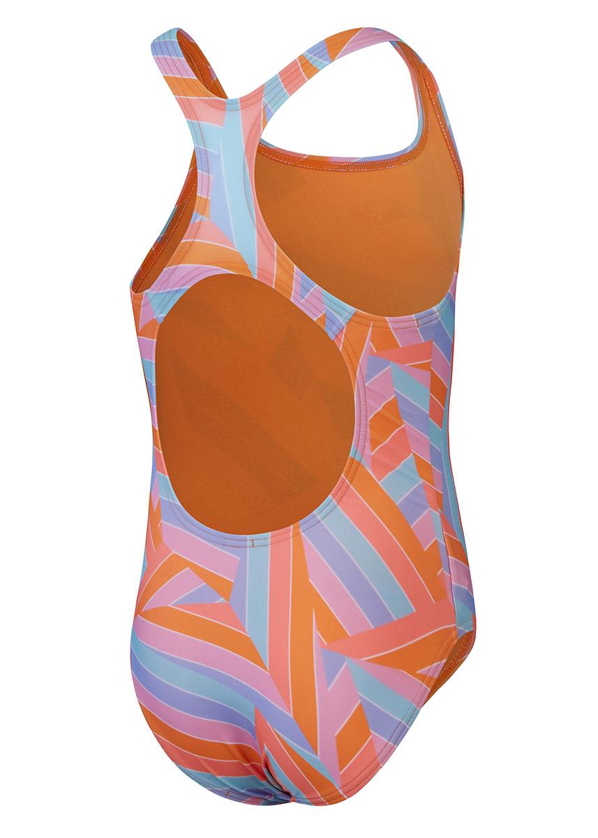 Incorporating a geometric pattern adorned in gentle, sunset hues, this fashionable girl’s Speedo Printed Medalist swimsuit looks right at home on the beach.