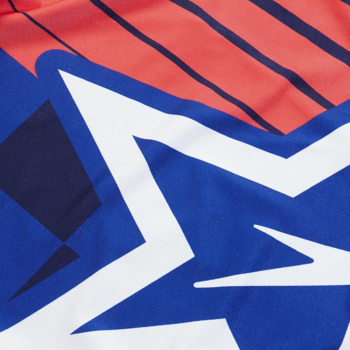 The Placement Superstar Vback swimsuit, pairs a chequered blue background with a bold Boom star graphic.