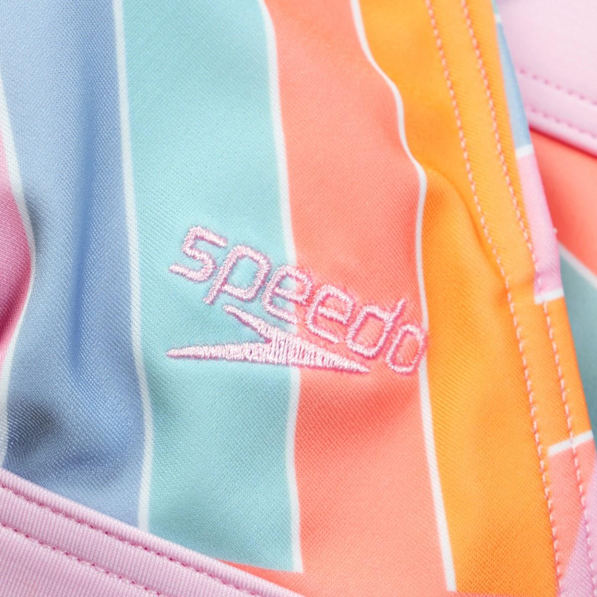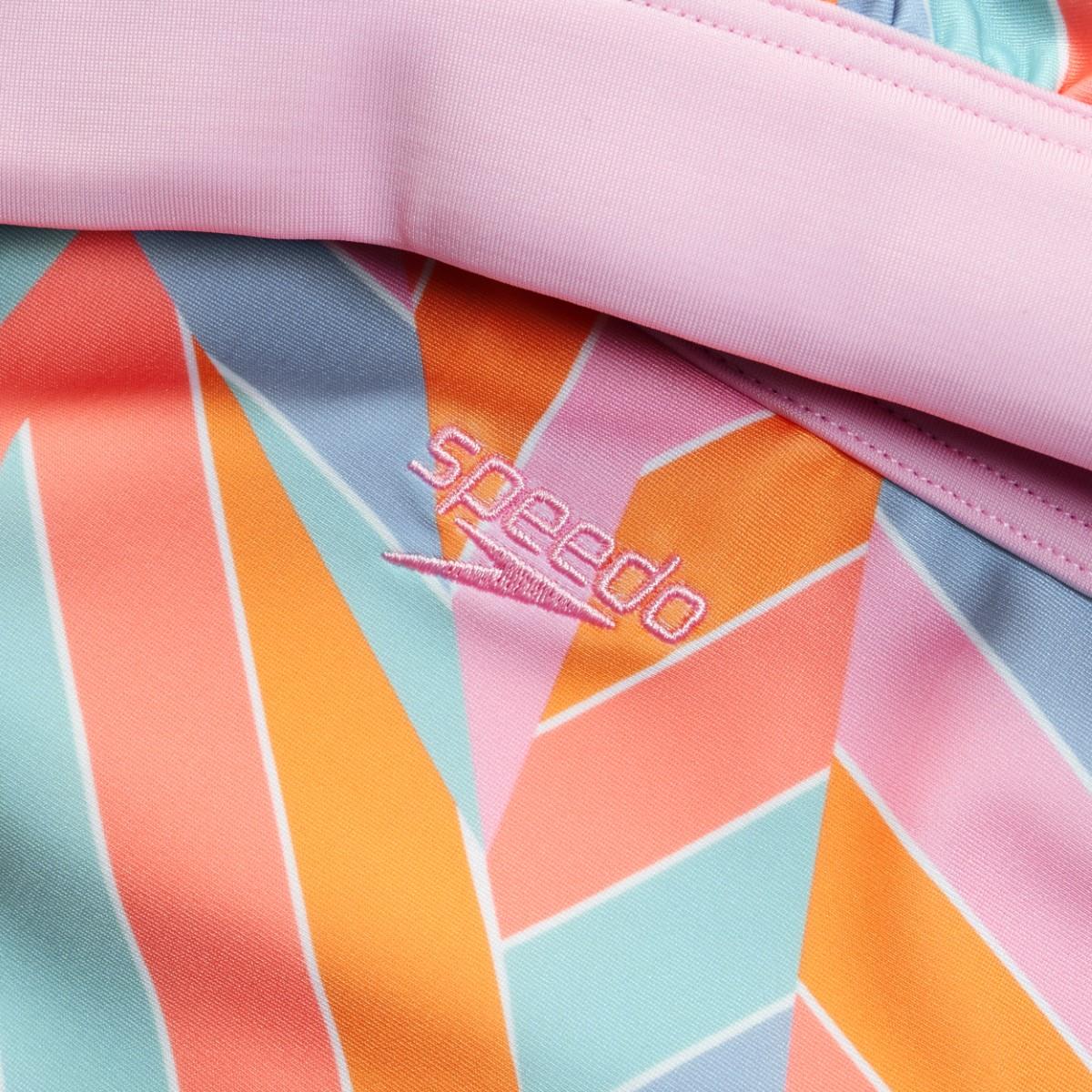 Immerse Yourself in the Ultimate Swim Experience with the Speedo Printed Banded Triangle Swim Bikini – Pink / Pumpkin / Blue / Coral