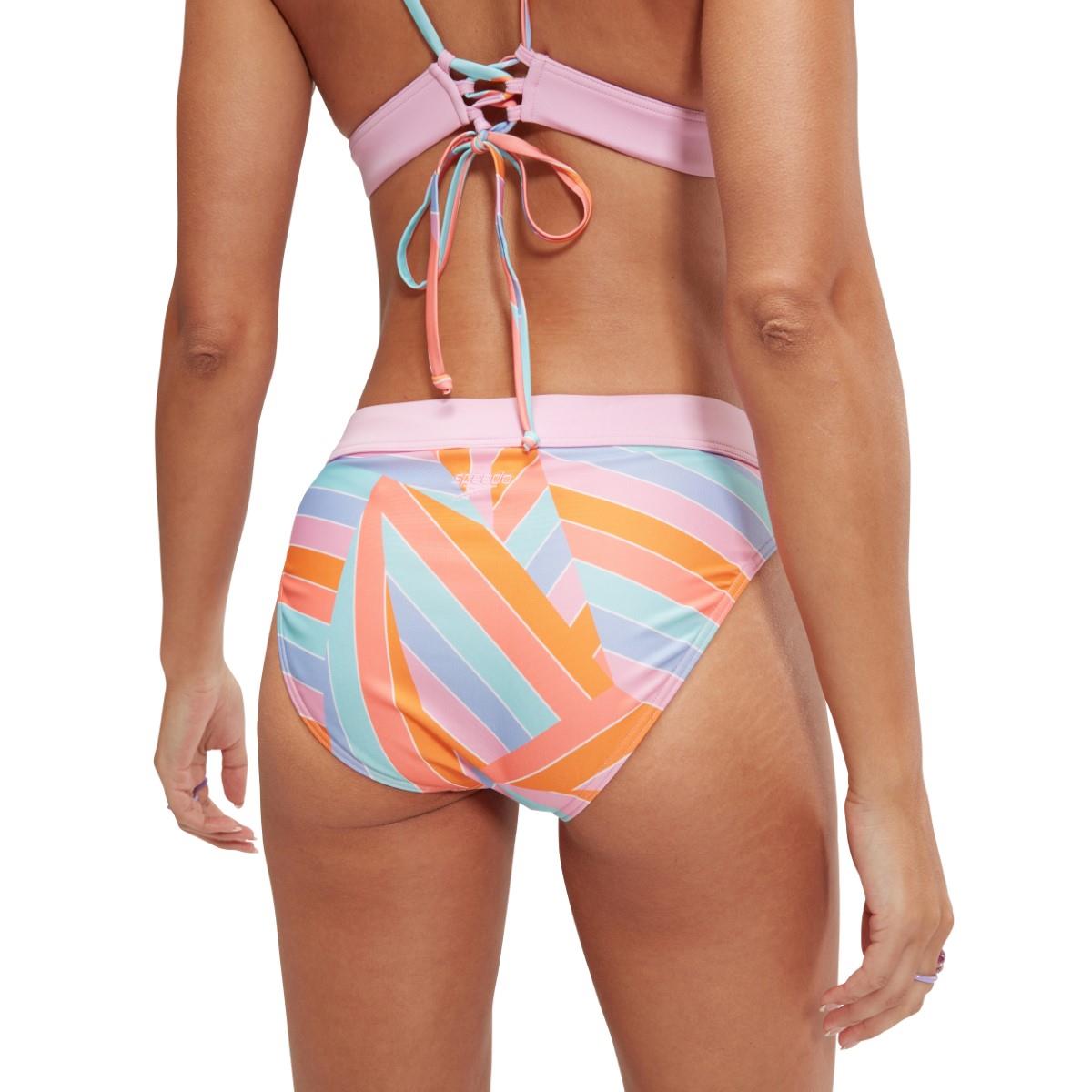 Amp up your poolside look with the strikingly stylish Speedo Printed Banded Triangle Swim Bikini in an alluring mix of Pink, Pumpkin, Blue, and Coral shades.