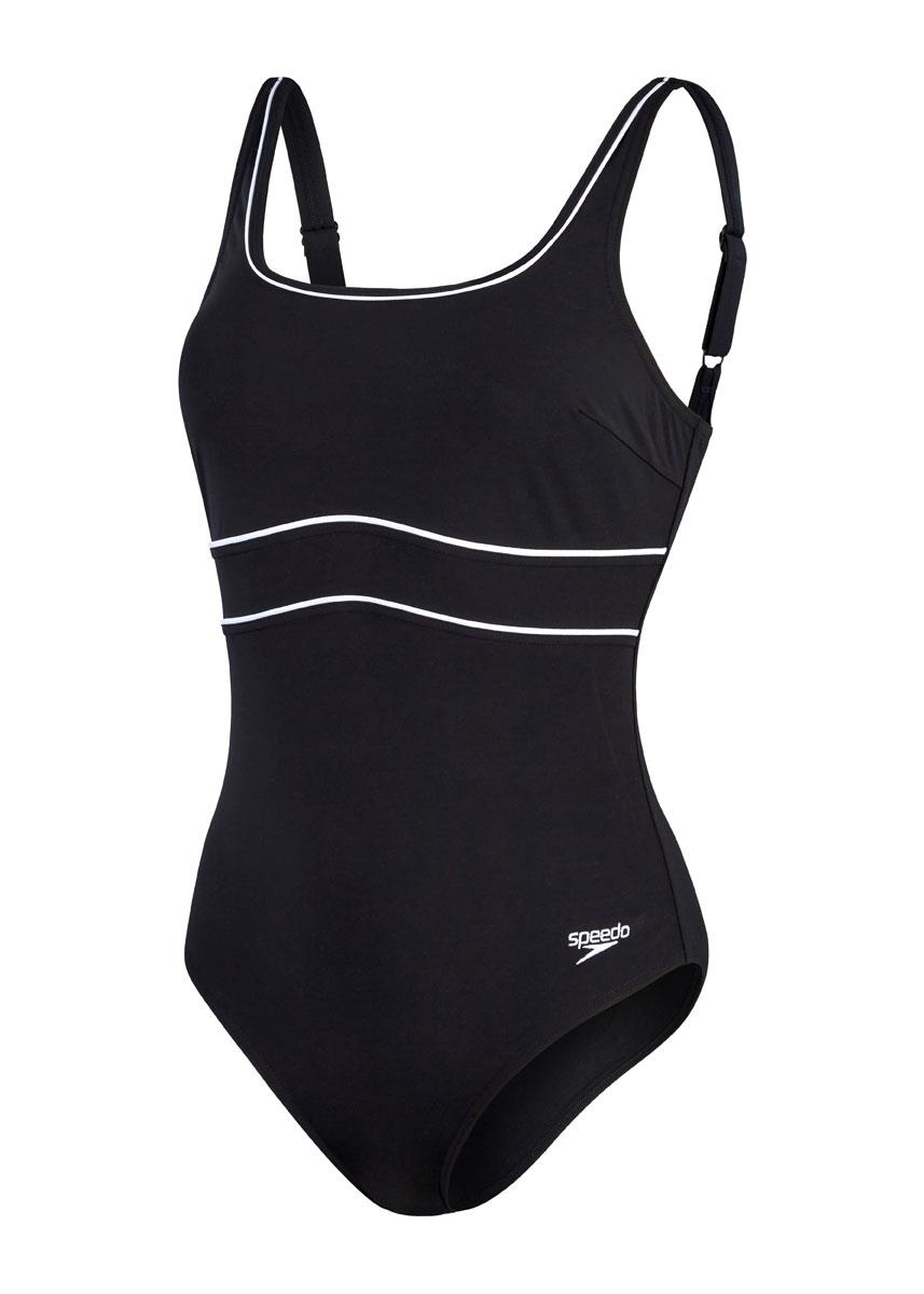 Enhances, flatters and feels good all over. The sporty-look black Contour Eclipse swimsuit includes a square neckline and uses white underbust seaming to draw the eye upwards and flatter your shape.