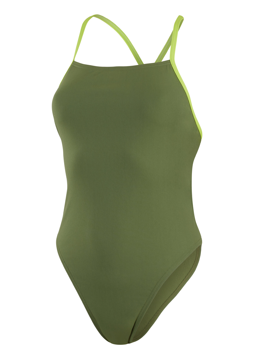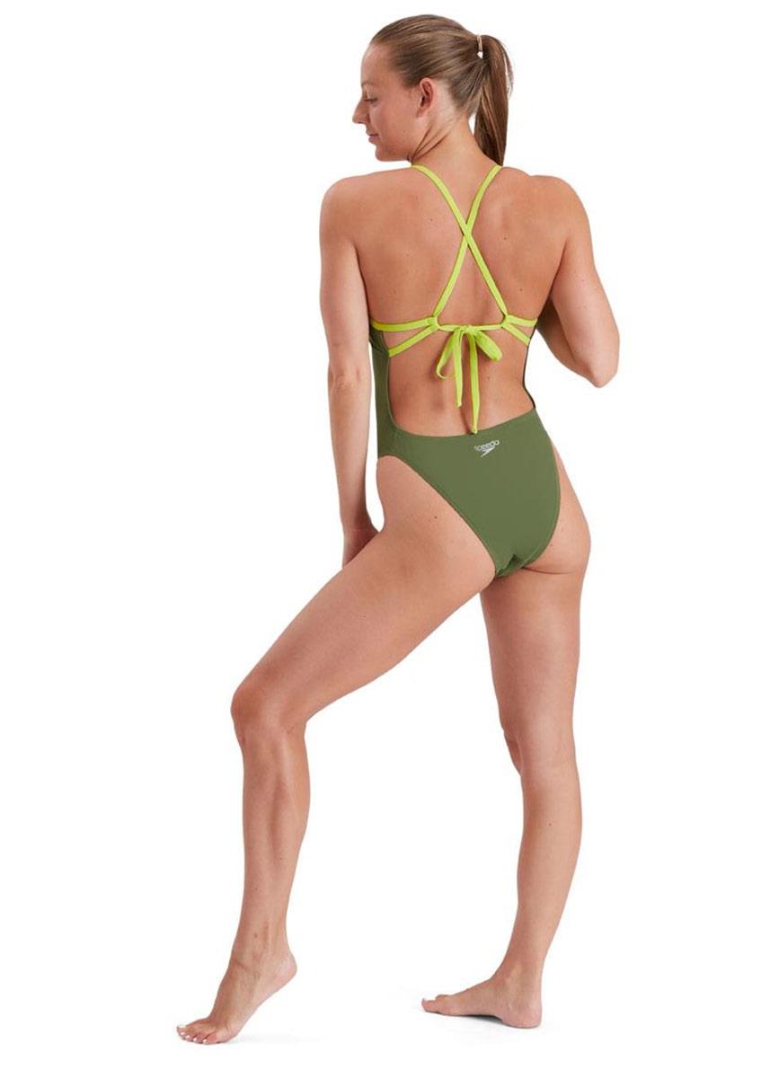 Let your swim skills do the talking, wearing with the olive coloured Speedo Solid Tie-Back swimsuit.
