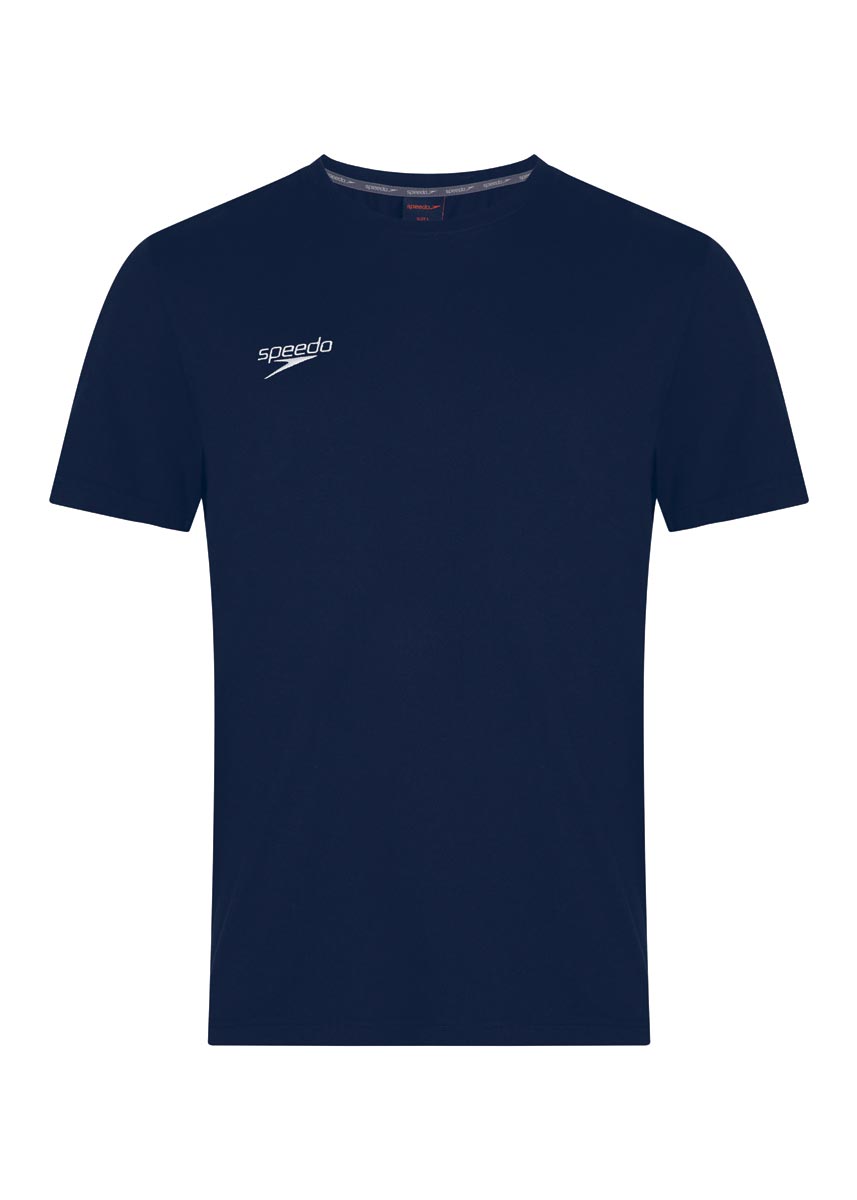 This all-purpose crew neck Speedo navy blue T-Shirt offers practicality with a leisure twist that can be worn during training, wearing to a gala, or paired with jeans for a casual look.