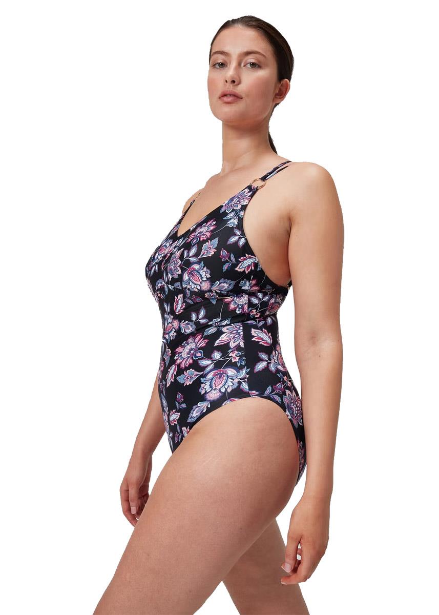 Crafted with a flattering V neckline, this Speedo Women’s Shaping Printed Strappy Swimsuit Shaping Swimsuit includes a stand-out floral print and a stylish twin-strap design for an elegant poolside look.