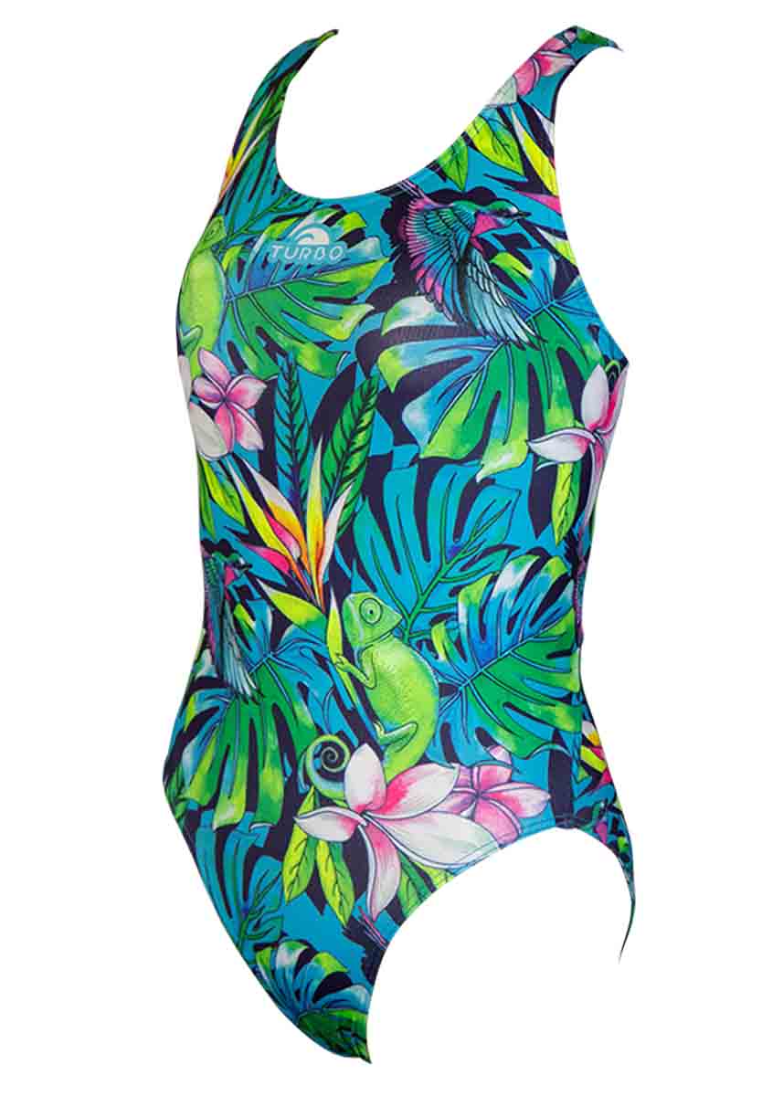 Printed with an eye-catching, floral design, the girls ‘Jungle Bird’ swimsuit from Turbo is perfect for regular training sessions or leisurely swims at the pool.