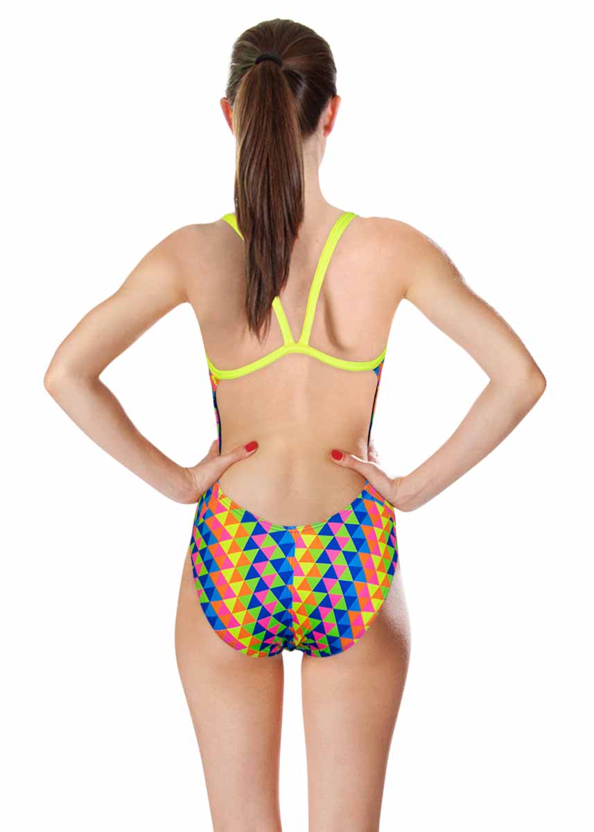 Printed with an eye-catching, geometric design, the women’s Tridimension swimsuit from Turbo is perfect for training sessions and regular pool use.