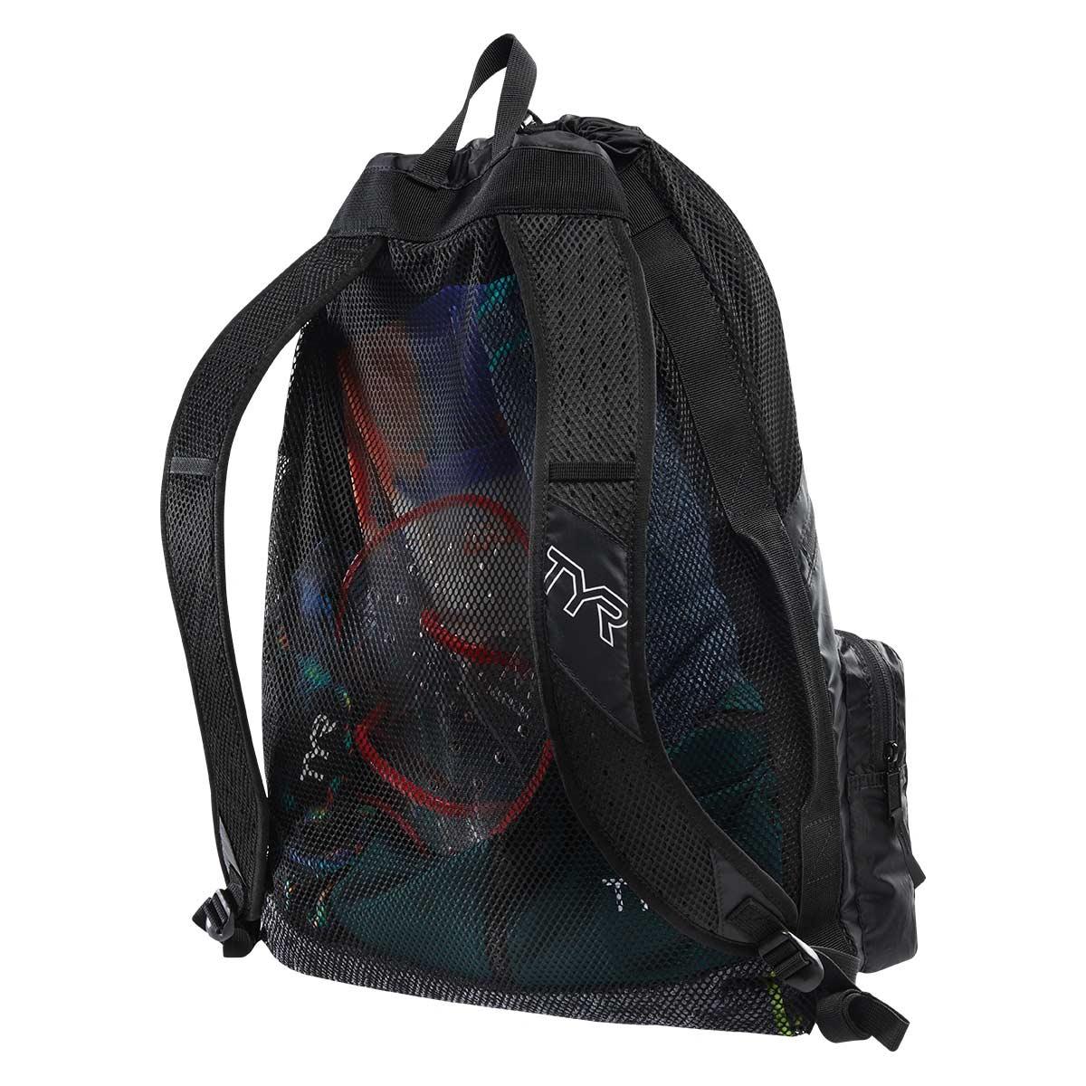 The TYR Elite Team Mesh Backpack features mesh venting for increased dry time and drainage.