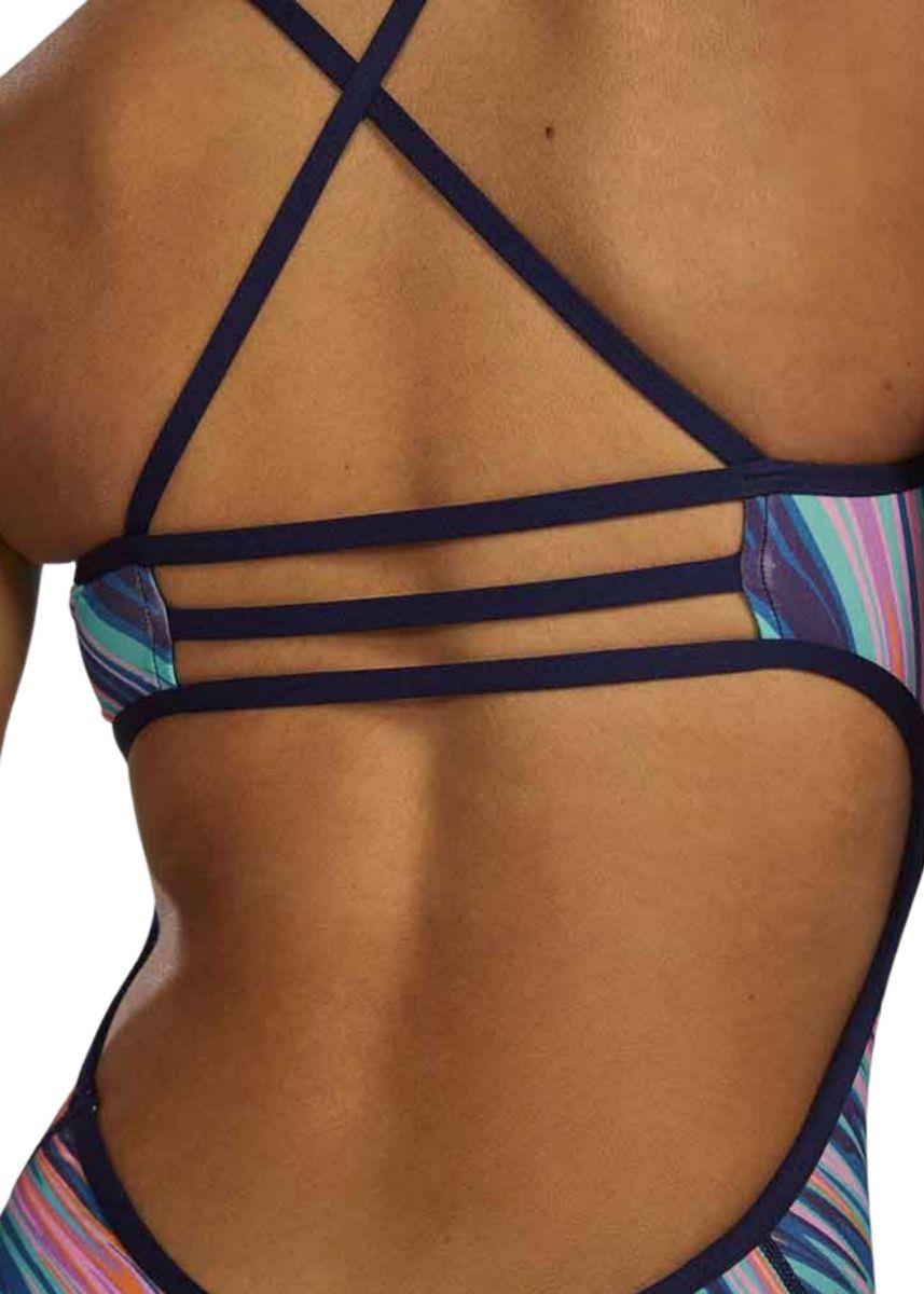 Featuring a triple-bound keyhole cross back for enhanced mobility and flexibility, this swimsuit ensures a supportive fit without compromising comfort.