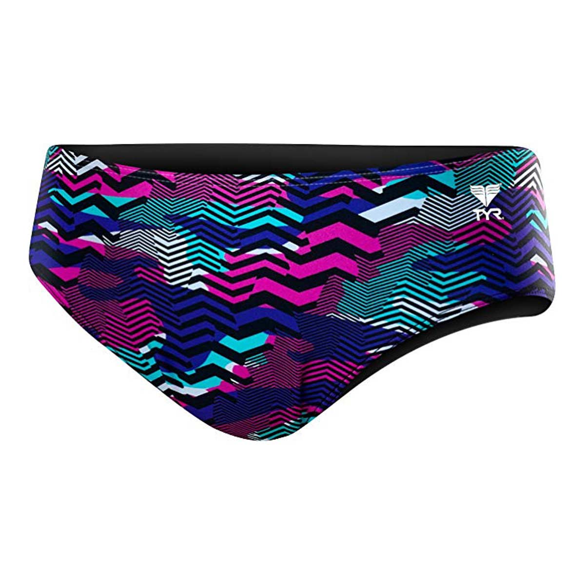 The TYR Teramo mens swimming briefs have a bright and colourful zigzag pattern.