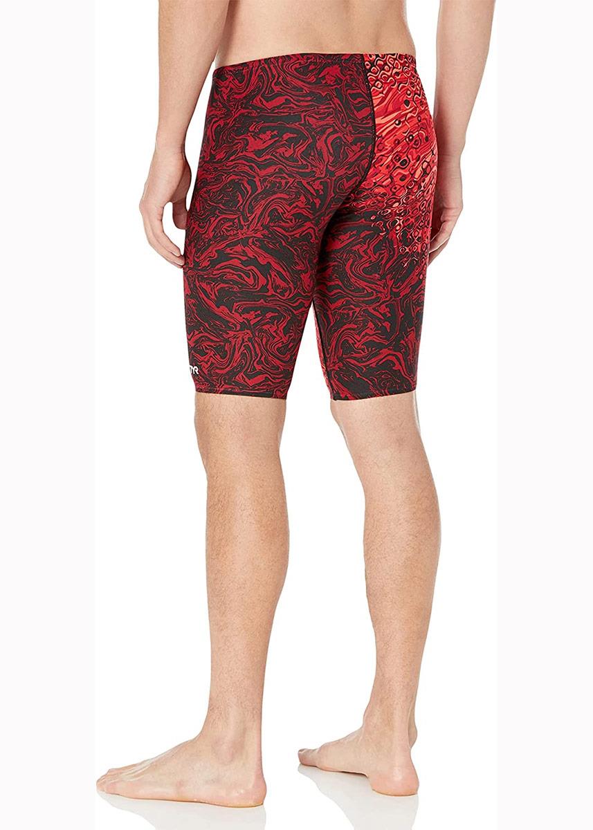The TYR men’s Chroma Jammer is fully lined and cuts off just above the knee, featuring both a compressive fit and an adjustable drawcord.