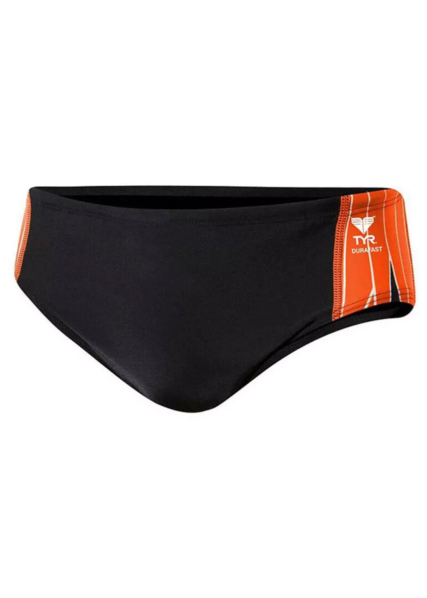 The black and orange TYR Phoenix Splice Racer briefs are a great choice for club and fitness swimmers that require a new pair of swimming briefs for regular pool use.