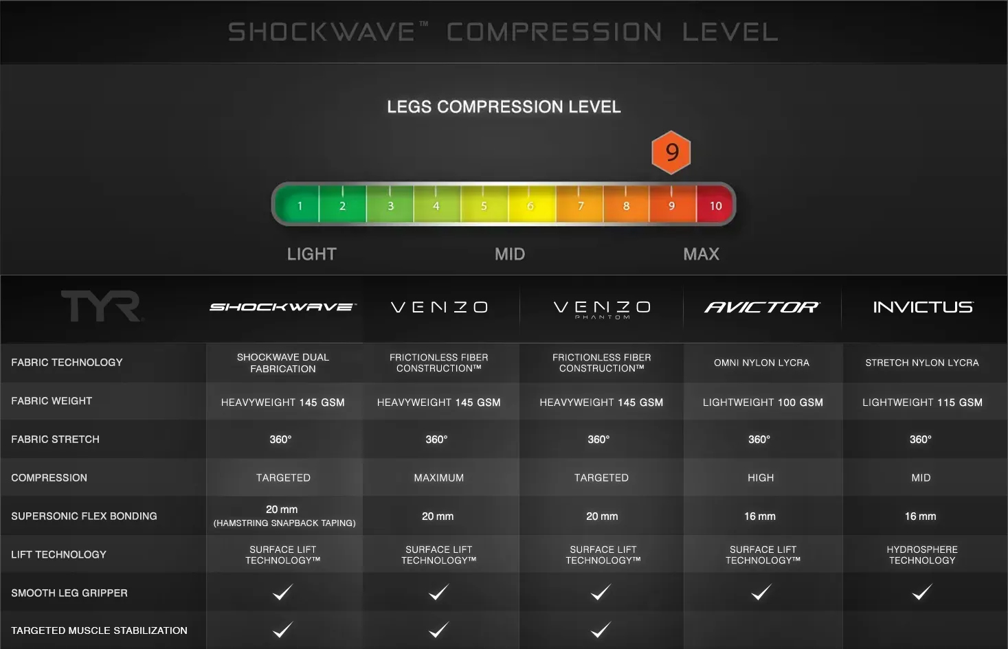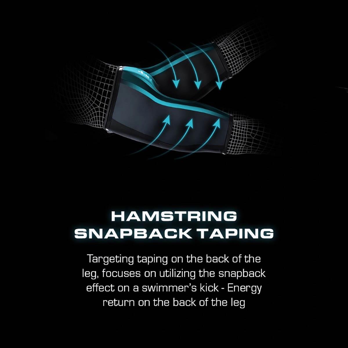 This high compression tech suit utilizes Shockwave Dual Fabrication to create targeted muscle stabilization and added structured flexibility, controlled muscle undulation, and reduced drag, while boosting natural lift for optimized positioning in the water. Shockwave’s Hamstring Snapback Taping™ technology is an innovation that allows a return on the already exerted energy of the swimmer by targeting and compressing the hamstring during the swimmer’s upkick to create a return of energy, propelling him and increasing distance per kick.