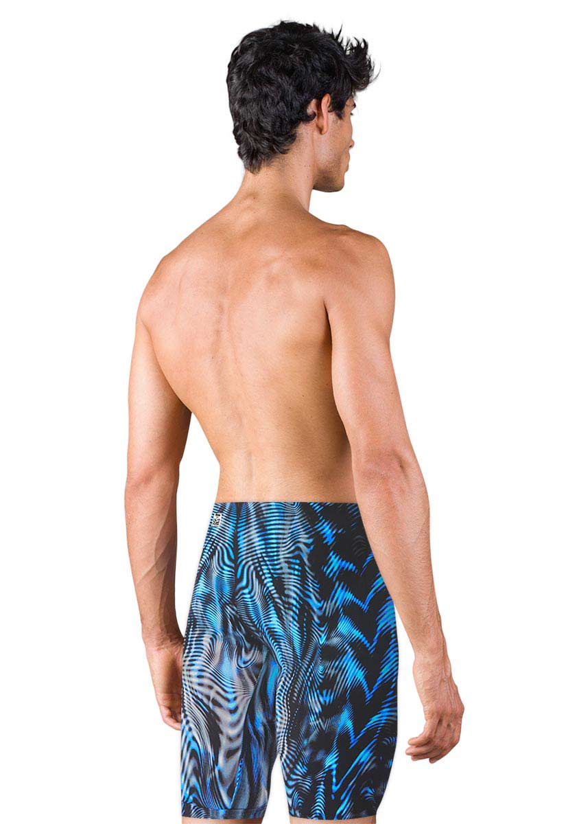TYR Venzo Genesis blue steel jammer is the latest TYR racing suit. Designed for performance and speed, the Venzo Genesis suit has been constructed with friction-free fibers that minimize drag. The compression cage provides excellent support for key muscle groups, allowing you to achieve your absolute best performance. The Venzo Genesis suit has been carefully designed with a streamlined design that uses a seamless construction to streamline your body position while decreasing drag.