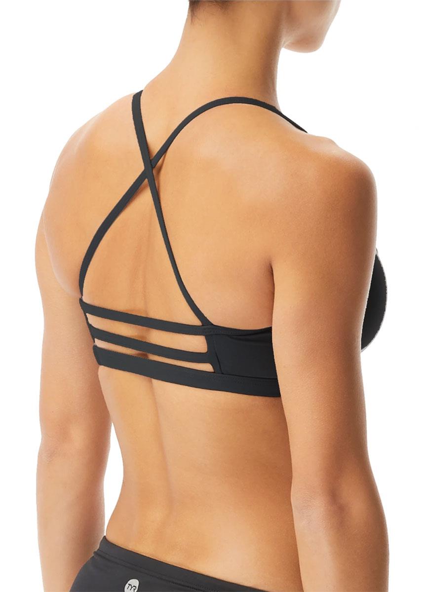 Take on every challenge in the black TYR Solid Trinity Bikini top, mix and match with your existing bikini bottoms to create a new look for your next training session.